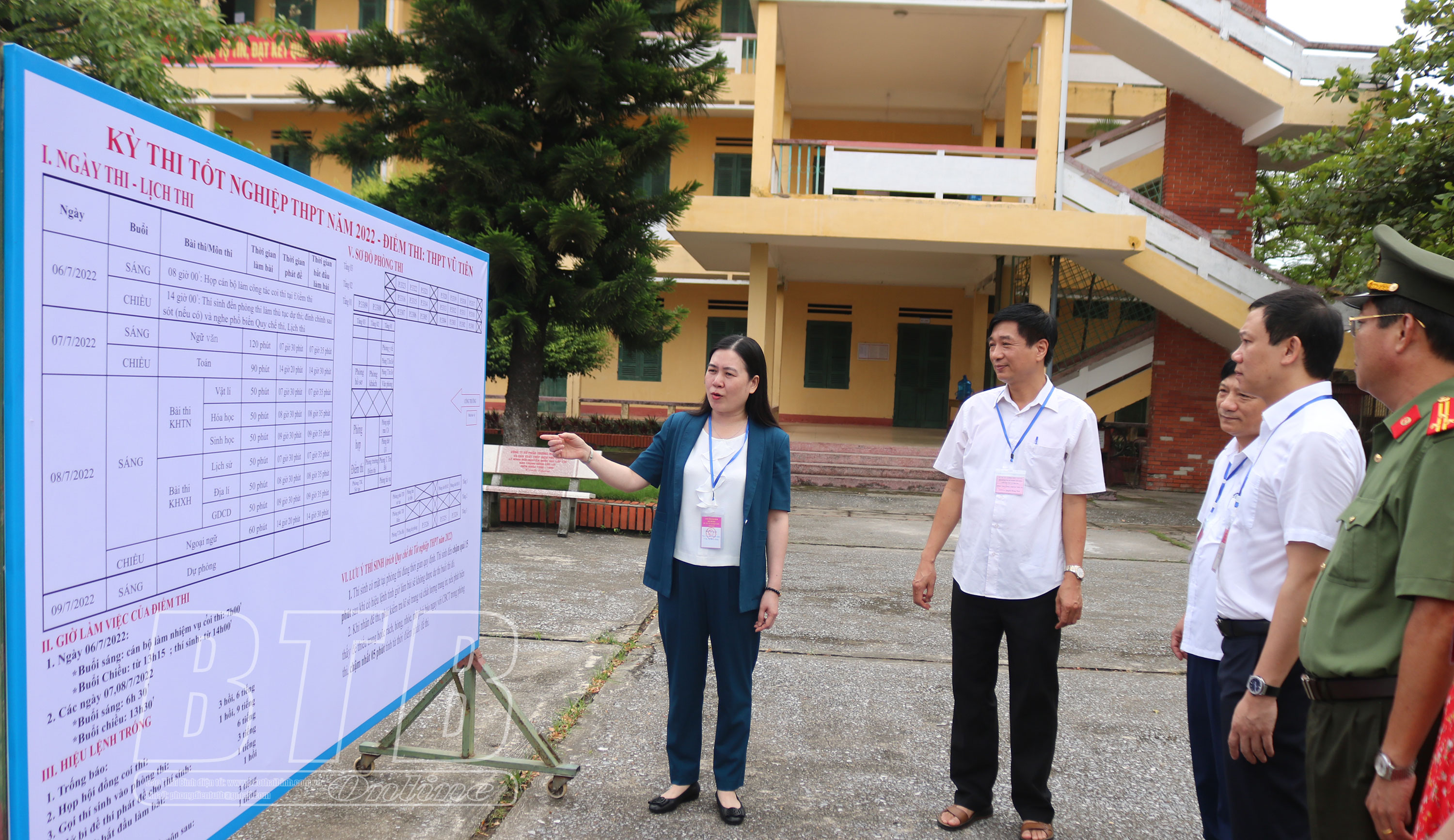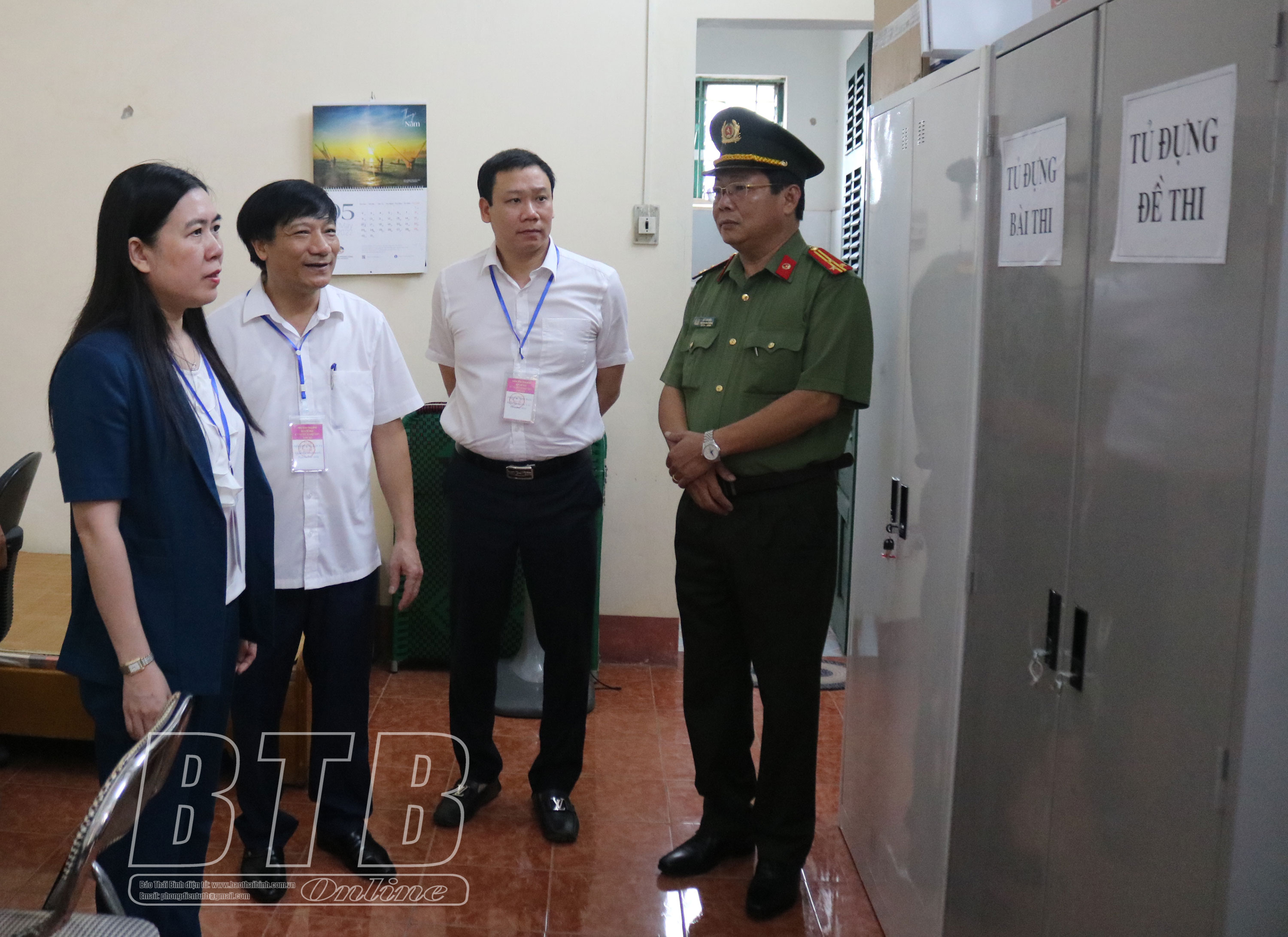 Đồng chí Trần Thị Bích Hằng, Phó Chủ tịch UBND tỉnh, Trưởng ban Chỉ đạo kỳ thi kiểm tra khu vực đựng đề thi và bài thi tại điểm thi Trường THPT Vũ Tiên.Sơ đồ thi tại các điểm thi được bố trí khoa học bảo đảm thuận tiện cho thí sinh tham dự kỳ thi.