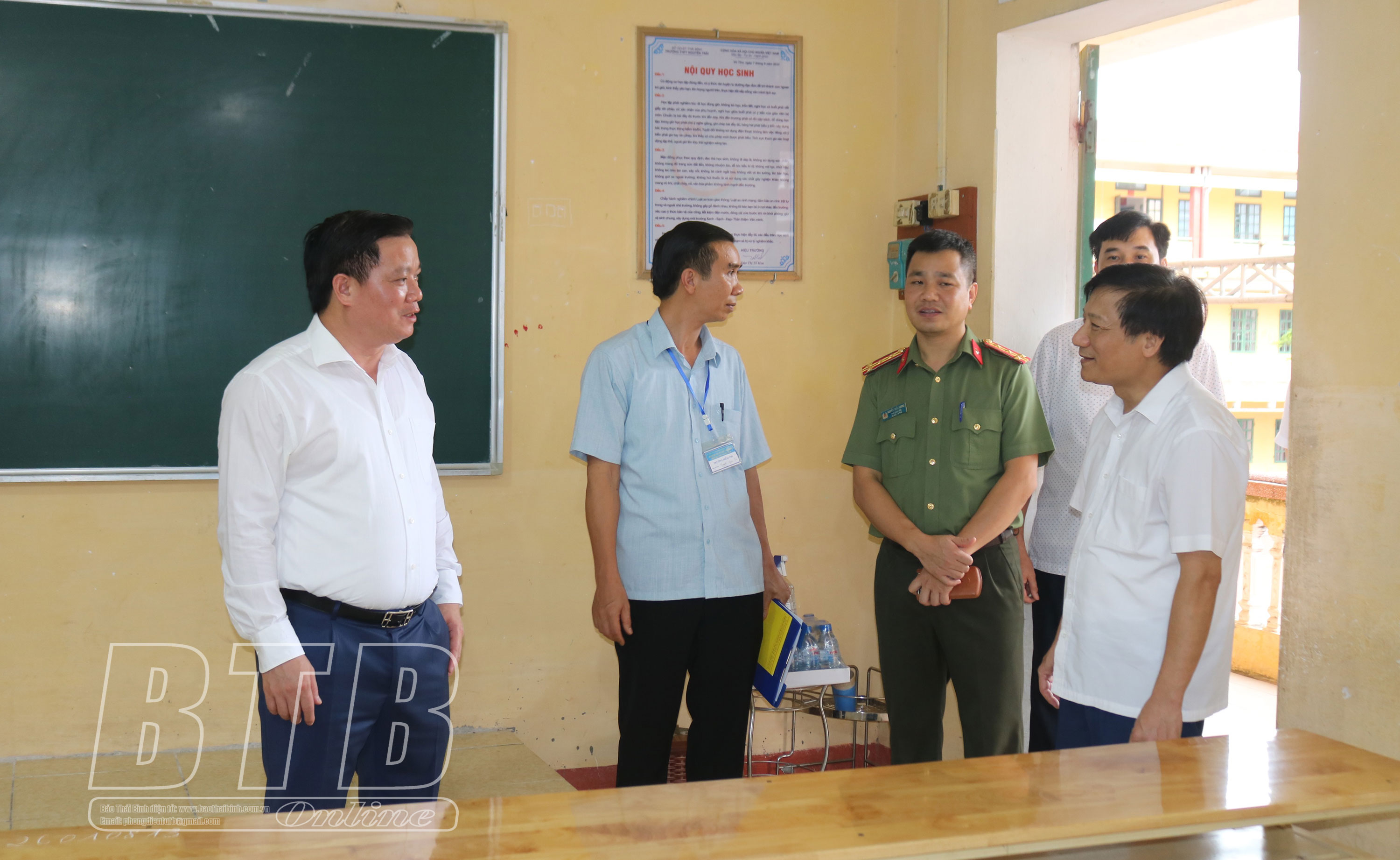 Kiểm tra thực tế tại các điểm thi, đồng chí Phó Bí thư Tỉnh ủy, Chủ tịch UBND tỉnh ghi nhận công tác tổ chức kỳ thi của ngành giáo dục nói chung và của các điểm thi nói riêng. Đồng chí đề nghị các điểm thi nâng cao tinh thần, trách nhiệm, quán triệt đầy đủ quy định, quy chế, nhất là những điểm mới của kỳ thi năm nay đến cán bộ coi thi và lực lượng phục vụ thi. Trong suốt quá trình thi, trưởng điểm thi cần phân công, bố trí nhiệm vụ hợp lý, khoa học, đúng người, đúng việc cho các bộ phận; chú trọng công tác giám sát từ khâu giao nhận đề thi, bài thi...