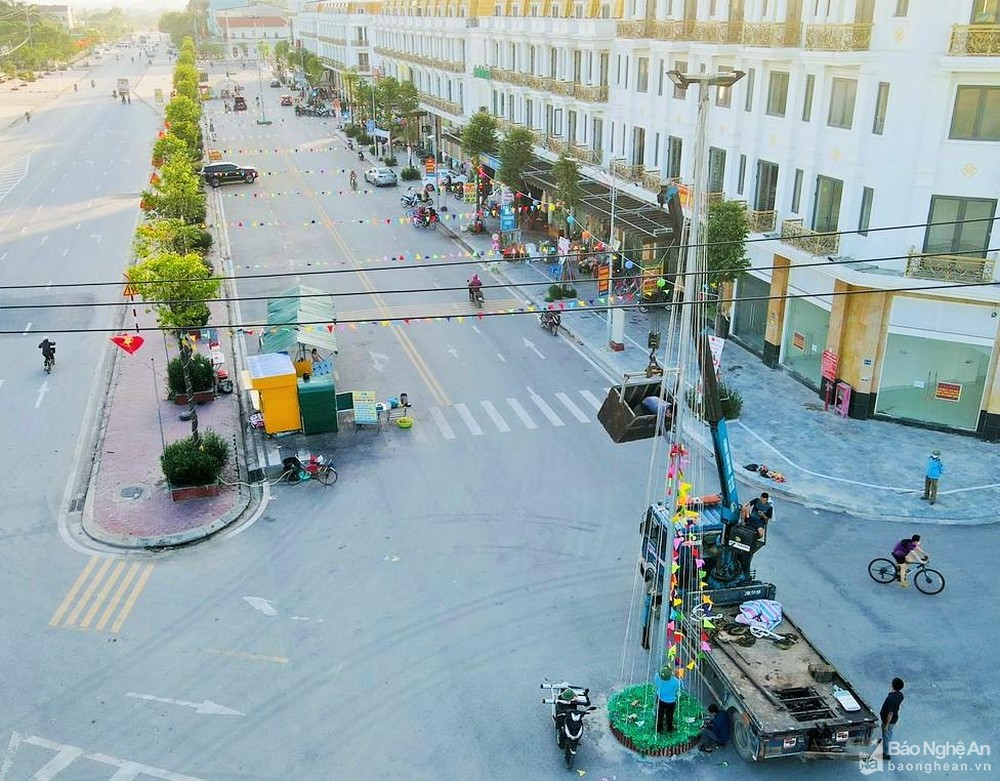 Lắp đặt hệ thống chiếu sáng đô thị ở Đô Lương. Ảnh: H.V