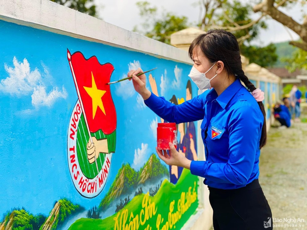 Đoàn viên, thanh niên tích cực tham gia các công trình, phần việc sáng tạo, góp sức xây dựng NTM ở Đô Lương. Ảnh: P.V