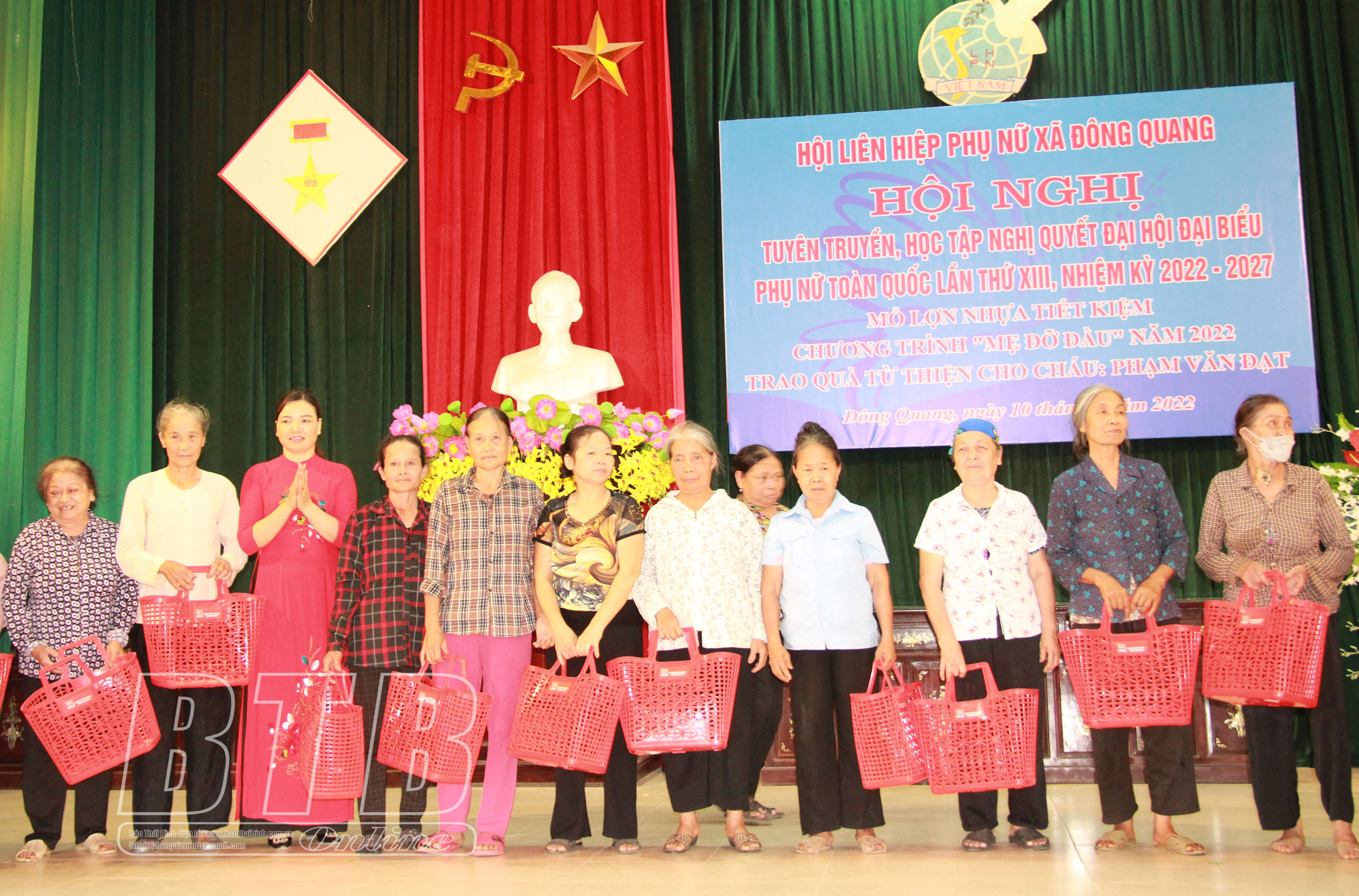 Hội LHPN xã Đông Quang trao làn nhựa cho hội viên.
