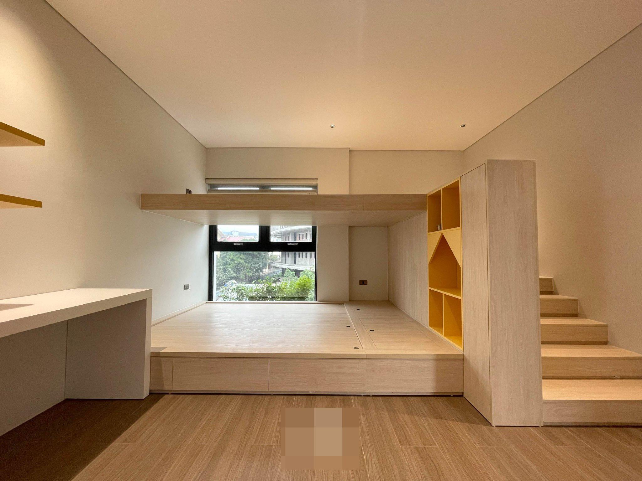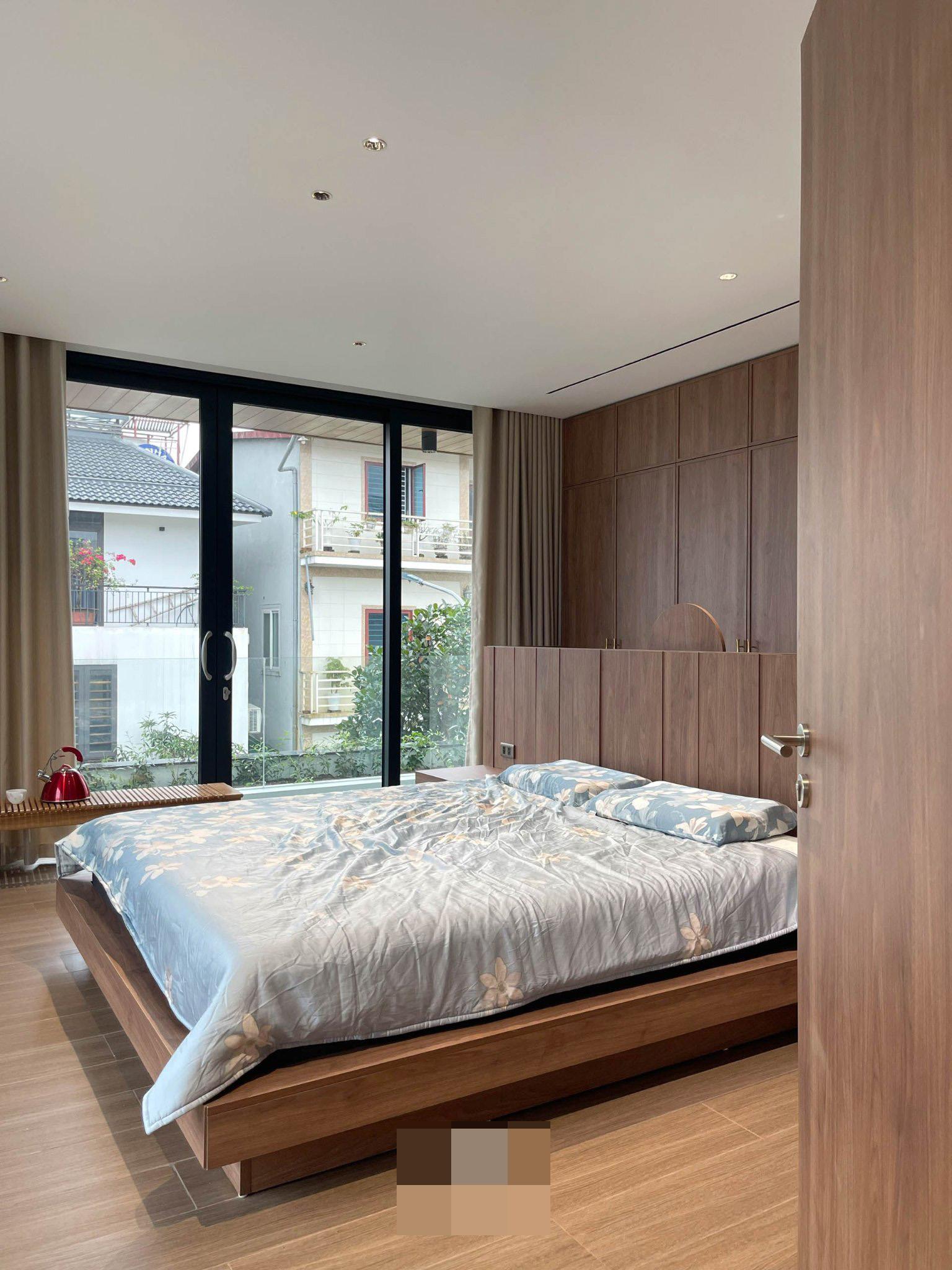 Phòng ngủ bố trí nhiều hộc tủ, kệ nhằm tăng tối đa diện tích sử dụng, lưu trữ giúp nhà luôn gọn gàng.