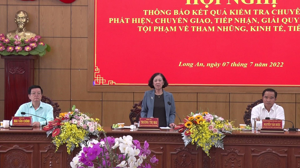 Đồng chí Trương Thị Mai yêu cầu Ban Thường vụ Tỉnh ủy Long An chỉ đạo rà soát, xử lý một số vụ án, vụ việc cụ thể, nhất là các vụ việc phức tạp, dư luận xã hội quan tâm.