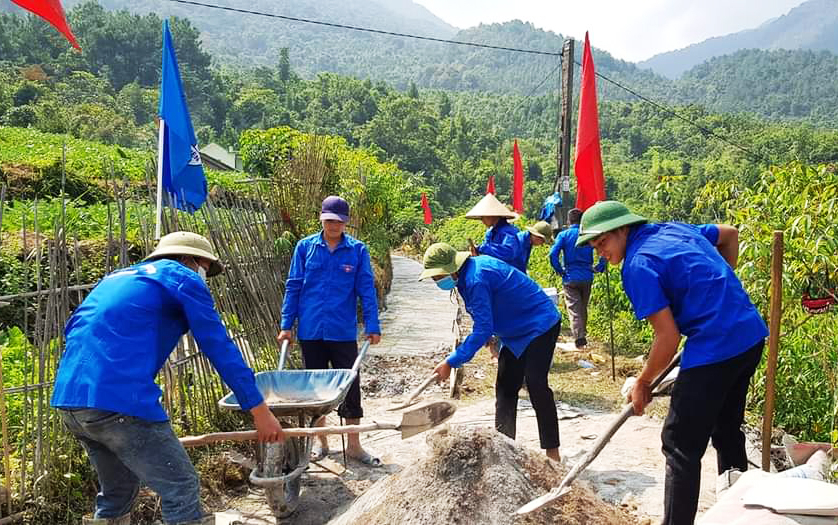 Lực lượng ĐVTN huyện Bình Liêu giúp người dân làm đường tại xã Đồng Văn.