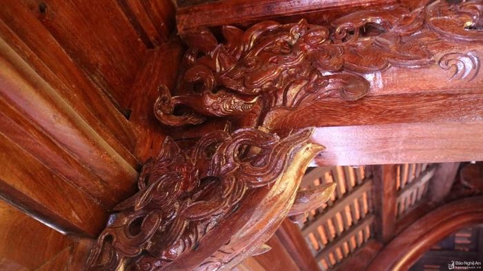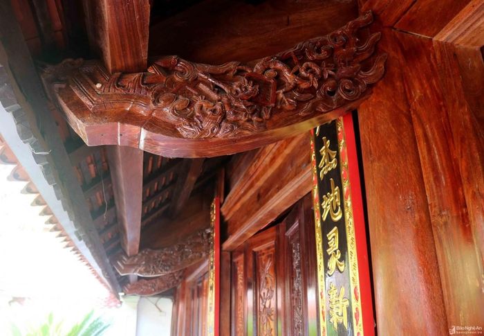 Hạ, xà cũng như nhiều kết cấu khác của thượng đường được điêu khắc chạm trổ hình ảnh tứ linh, tứ quý, hoa lá, vân mây... một cách sống động, uyển chuyển.
