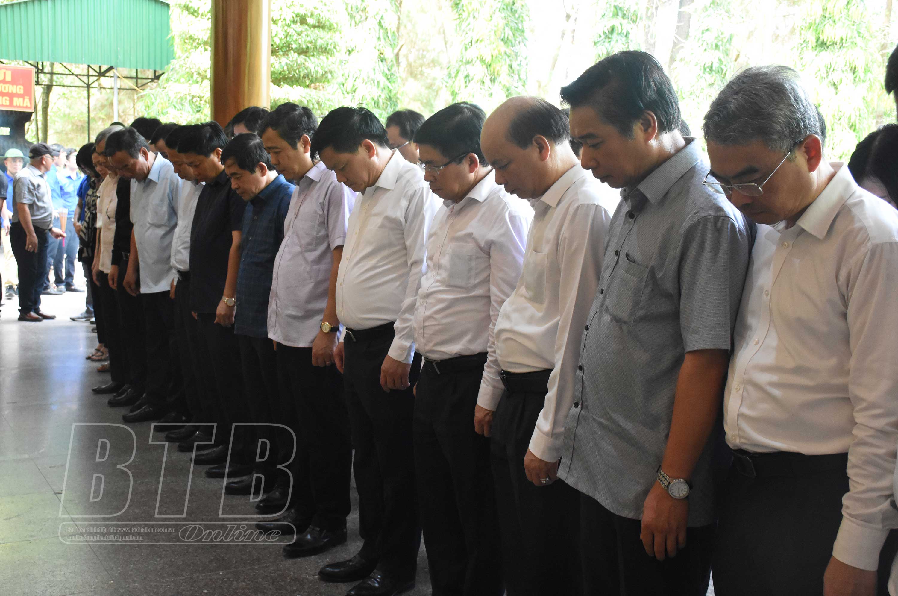 Trước anh linh các anh hùng liệt sĩ, Đoàn đại biểu tỉnh Thái Bình kính cẩn nghiêng mình, dành phút mặc niệm để bày tỏ lòng biết ơn vô hạn đối với công lao to lớn của các thế hệ cha anh vì sự nghiệp đấu tranh giải phóng dân tộc và thống nhất đất nước.
