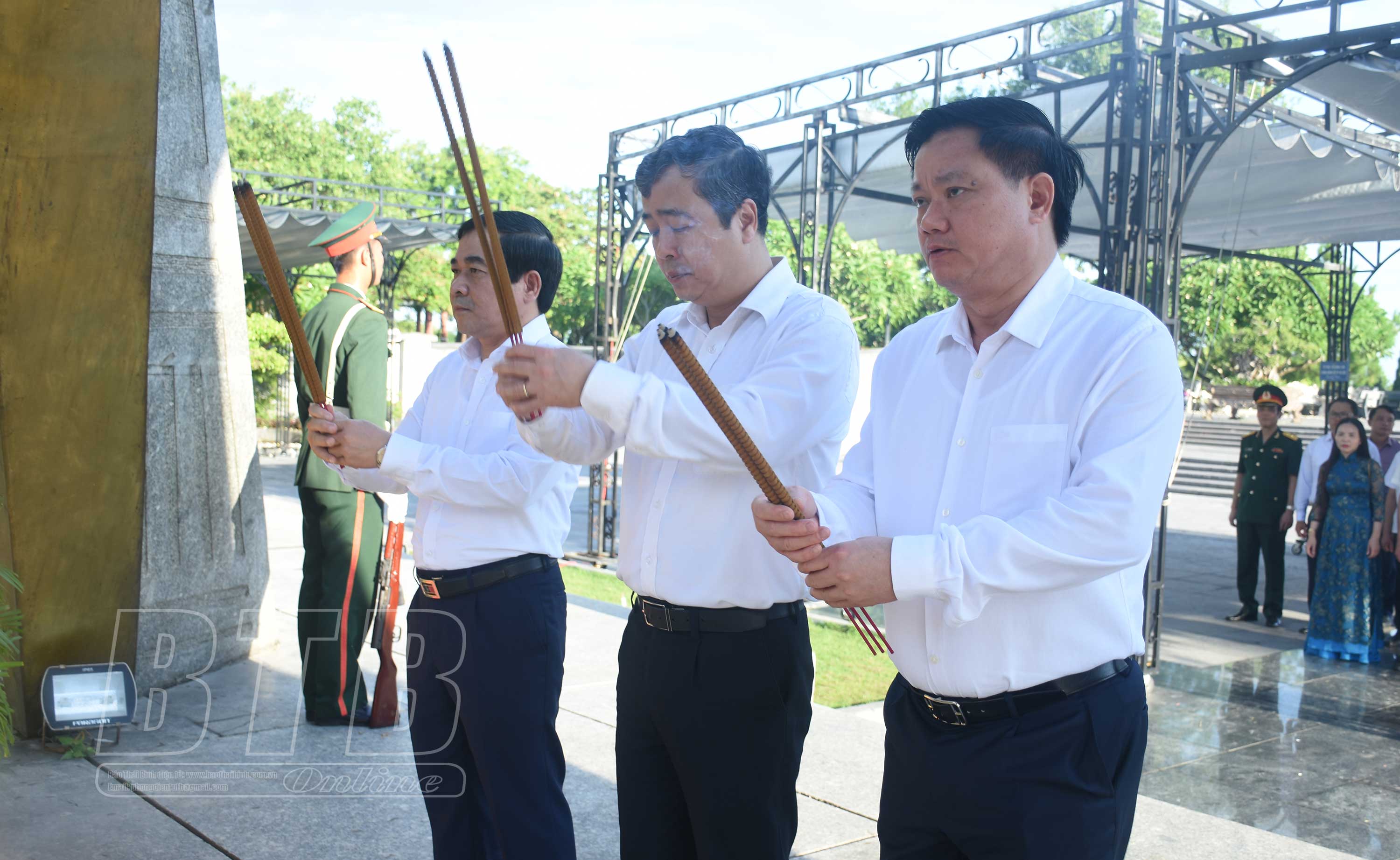Trong không khí trang nghiêm, xúc động, các đồng chí lãnh đạo tỉnh đã đến đặt vòng hoa, dâng hương và dành phút mặc niệm bày tỏ lòng thành kính và biết ơn vô hạn đối với công lao to lớn của Chủ tịch Hồ Chí Minh, của các anh hùng liệt sĩ đã ngã xuống vì độc lập, tự do của Tổ quốc, vì hạnh phúc của nhân dân. Trước anh linh của Chủ tịch Hồ Chí Minh, các anh hùng liệt sĩ, Đảng bộ, chính quyền và nhân dân tỉnh Thái Bình nguyện hứa: Sống, chiến đấu, lao động và học tập theo gương Bác Hồ vĩ đại, phát huy truyền thống tốt đẹp của quê hương. Tiếp bước truyền thống vẻ vang của các lớp cha anh đi trước, tiếp tục chăm lo, thăm hỏi các gia đình chính sách, người có công với cách mạng, giúp đỡ và tạo điều kiện cho các thương binh, bệnh binh, gia đình liệt sĩ, các Mẹ Việt Nam anh hùng vượt lên khó khăn, mất mát, cùng nhau phát triển kinh tế, xây dựng quê hương ngày một giàu đẹp hơn.