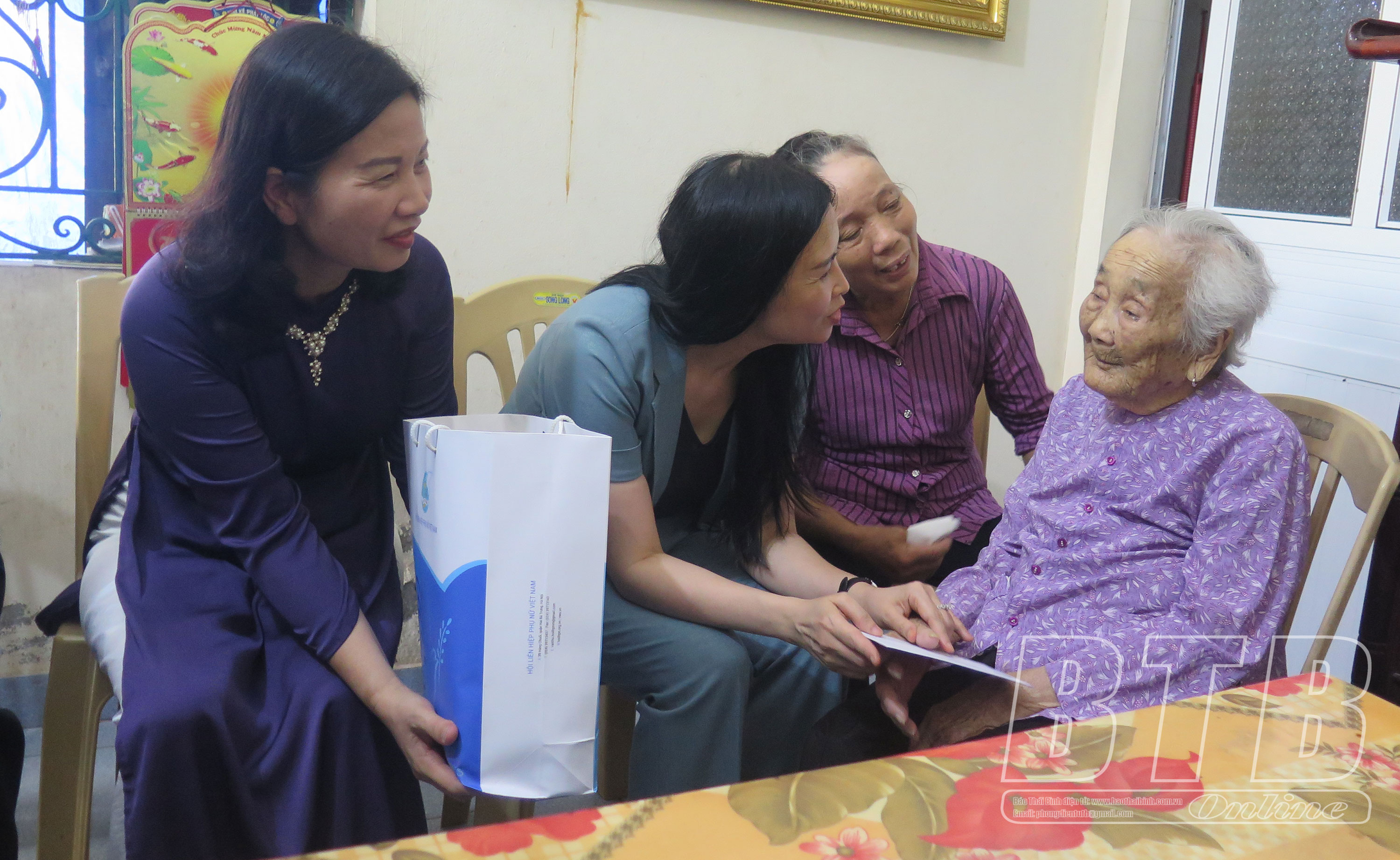 Đoàn công tác của Trung ương Hội LHPN Việt Nam, Hội LHPN tỉnh, lãnh đạo huyện Vũ Thư thăm hỏi, tặng quà Bà Mẹ Việt Nam anh hùng Hà Thị Hải, xã Dũng Nghĩa ( Vũ Thư).