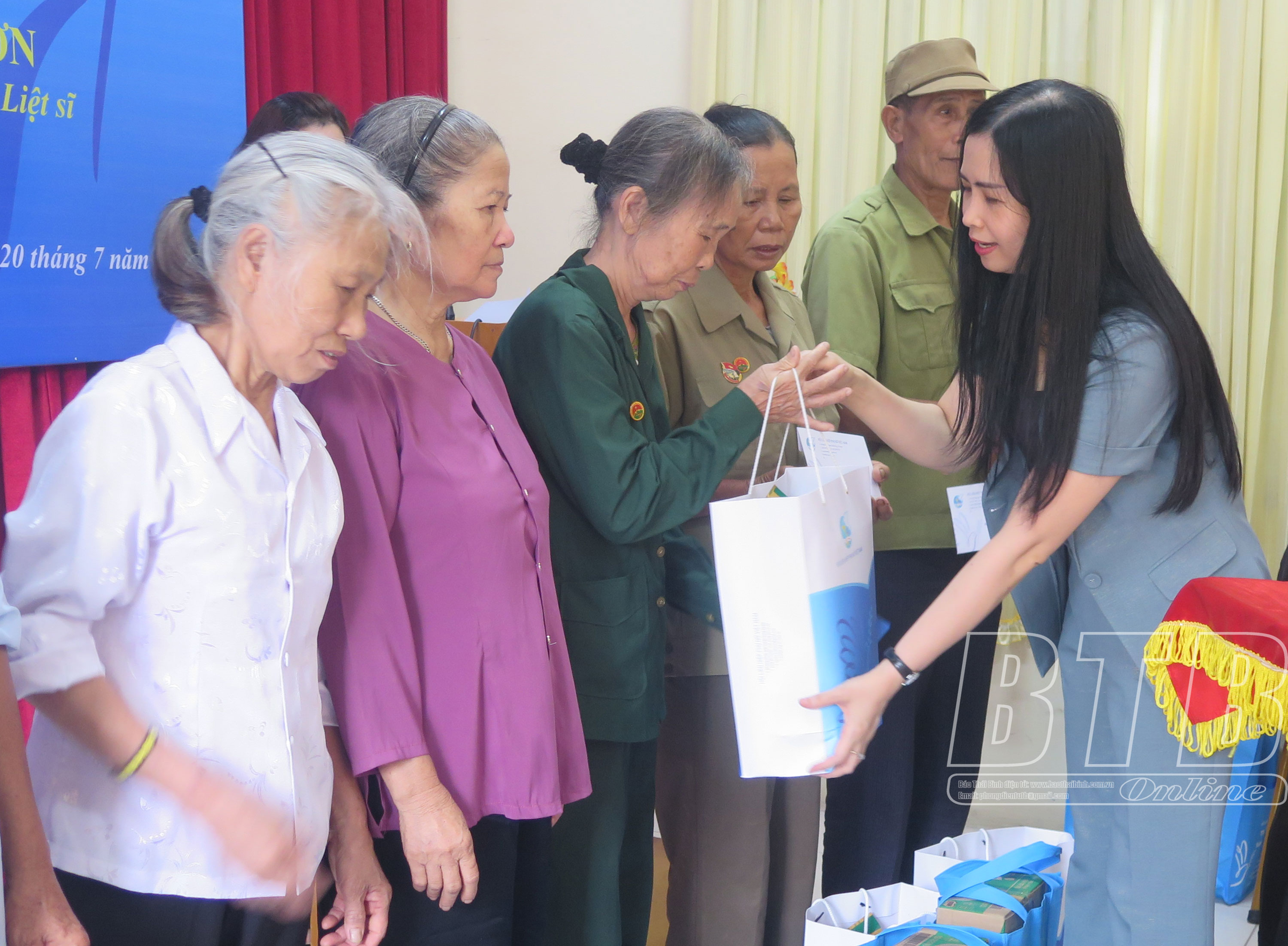 Buổi chiều cùng ngày, tại trụ sở Hội LHPN tỉnh, lãnh đạo Trung ương Hội LHPN Việt Nam, lãnh đạo Hội LHPN tỉnh, Hội Nữ chiến sĩ Trường Sơn đường Hồ Chí Minh đã tặng 20 suất quà cho các gia đình thương binh, liệt sĩ, người có công và nữ chiến sĩ Trường Sơn, mỗi suất trị giá 1,5 triệu đồng.