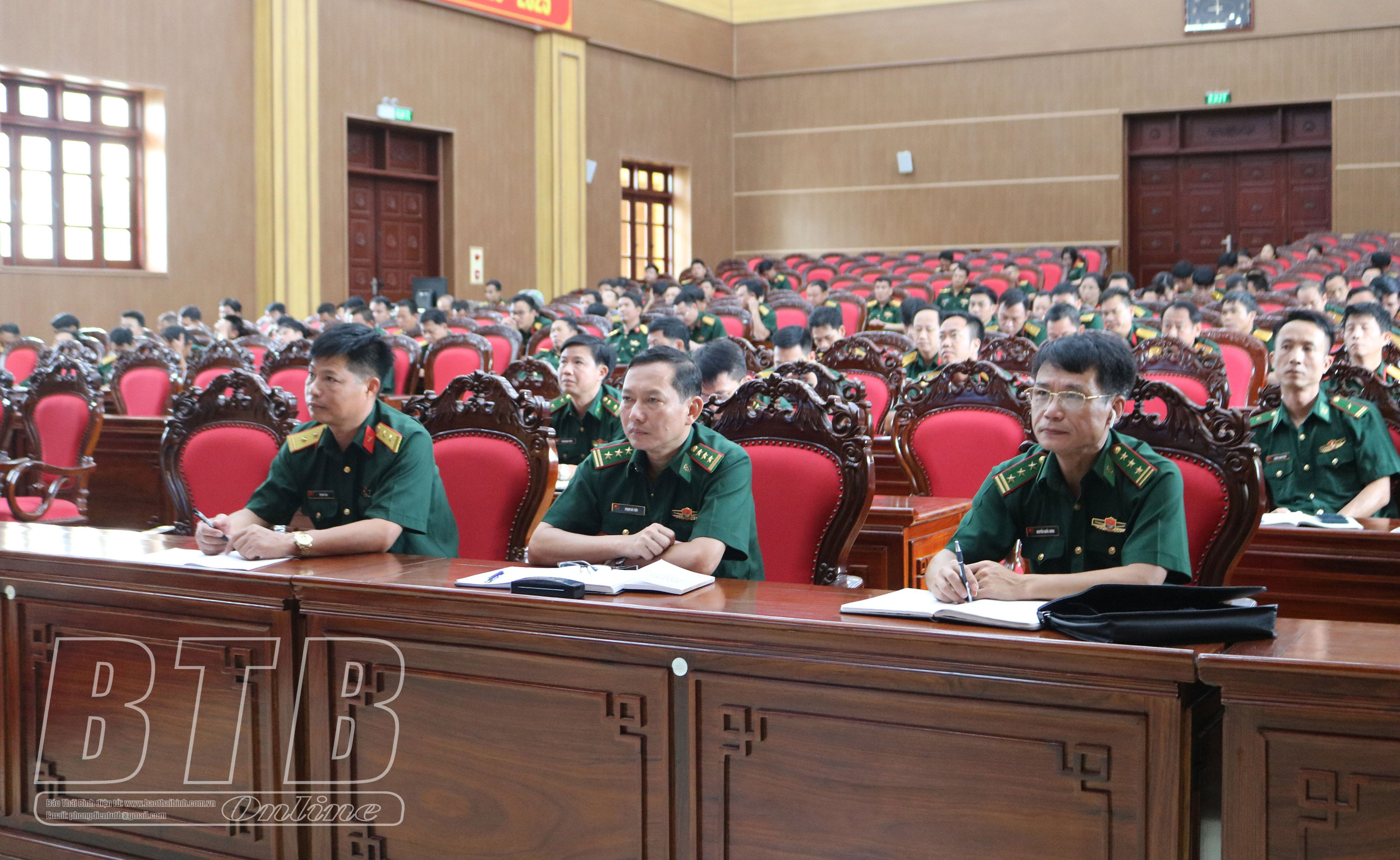 Các đại biểu dự hội nghị tại điểm cầu Bộ CHQS tỉnh.