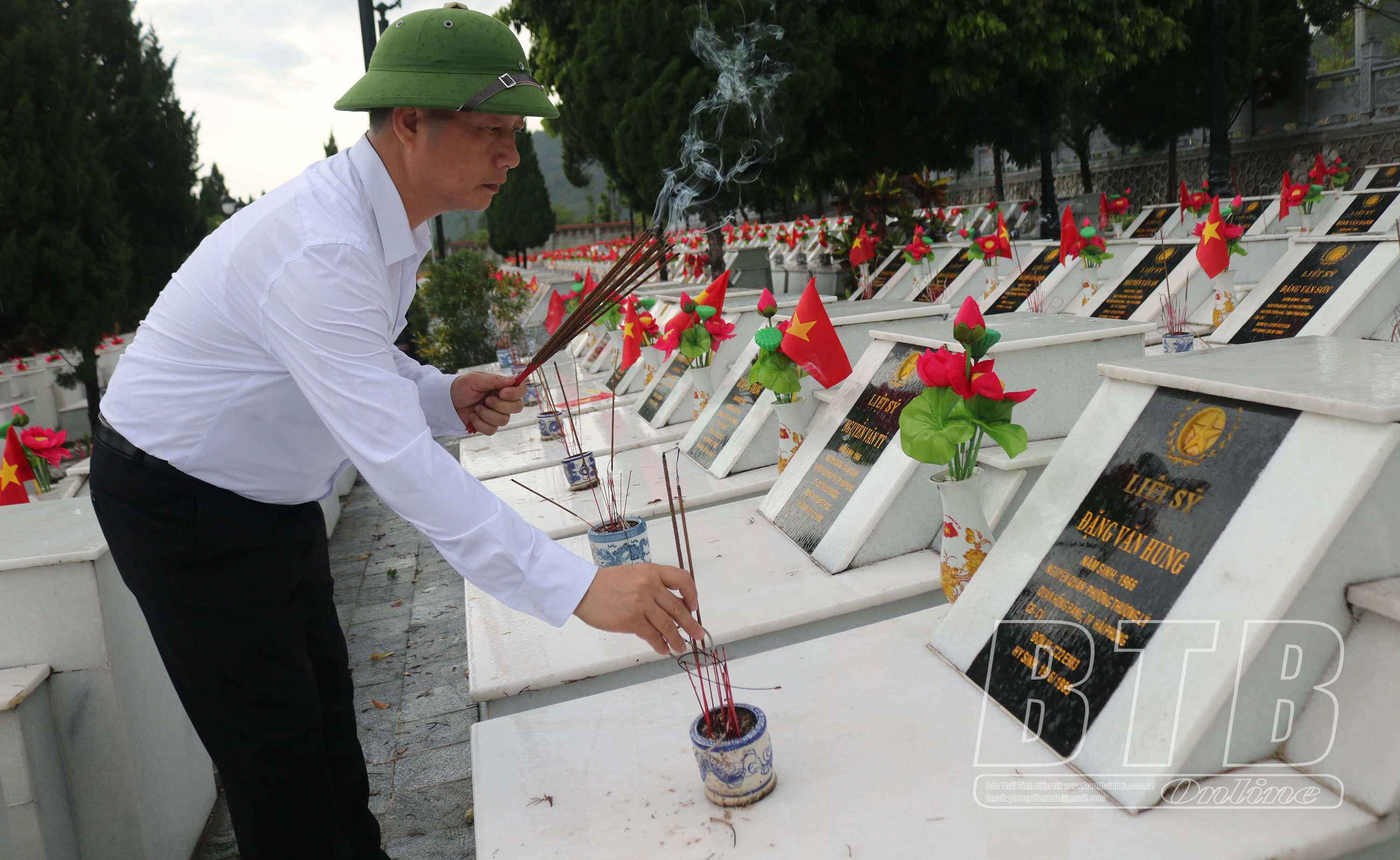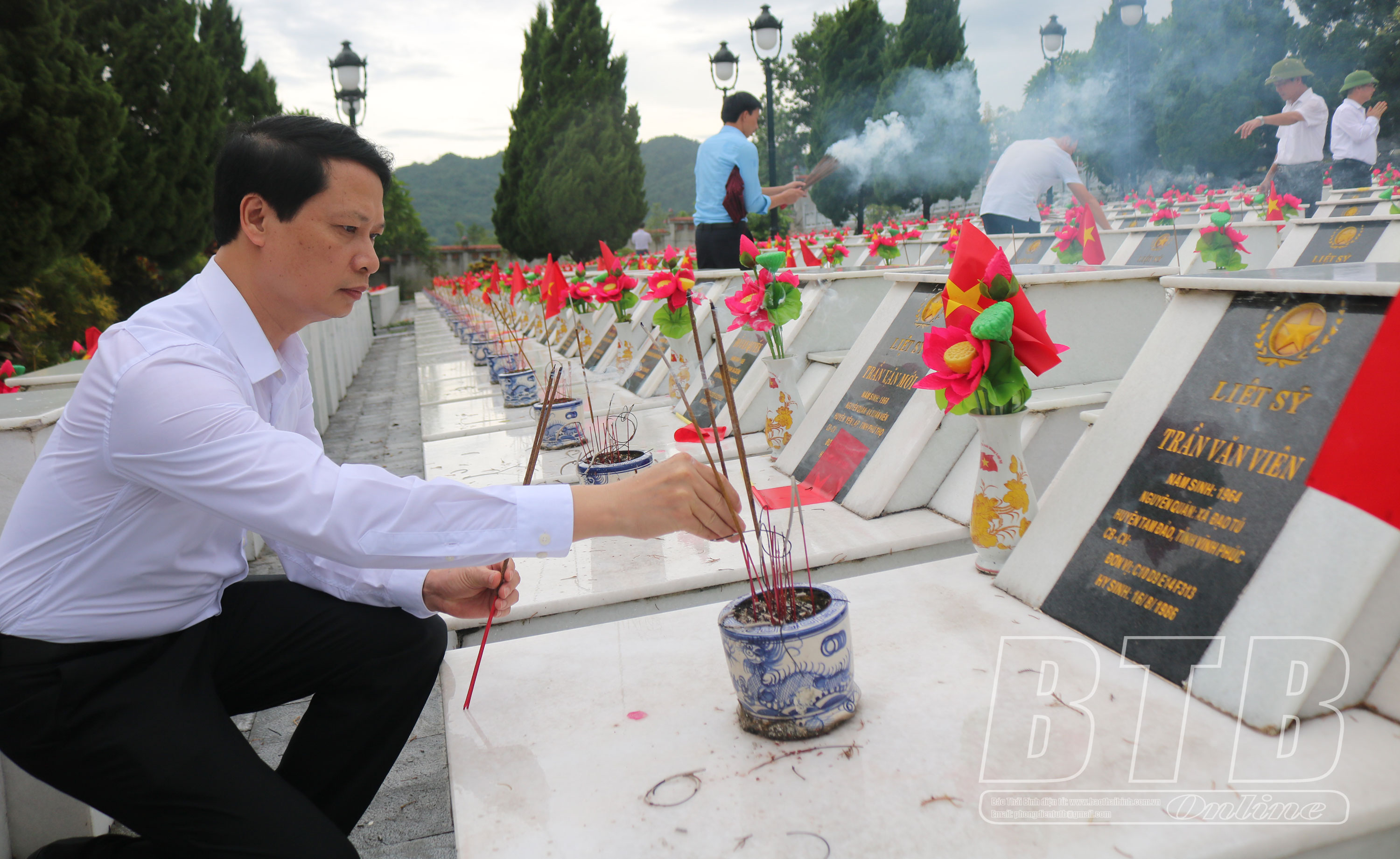 Trong không khí trang nghiêm, Đoàn đại biểu đã đặt vòng hoa của Tỉnh ủy, HĐND, UBND, Ủy ban MTTQ tỉnh, thành kính dâng hương, dành một phút mặc niệm tưởng nhớ các anh hùng liệt sĩ đã ngã xuống vì nền độc lập tự do của dân tộc. Các thành viên trong đoàn đã thắp hương lên Đài tưởng niệm, Đền thờ Liệt sĩ và trên từng phần mộ, bày tỏ lòng tri ân sâu sắc các anh hùng liệt sĩ.