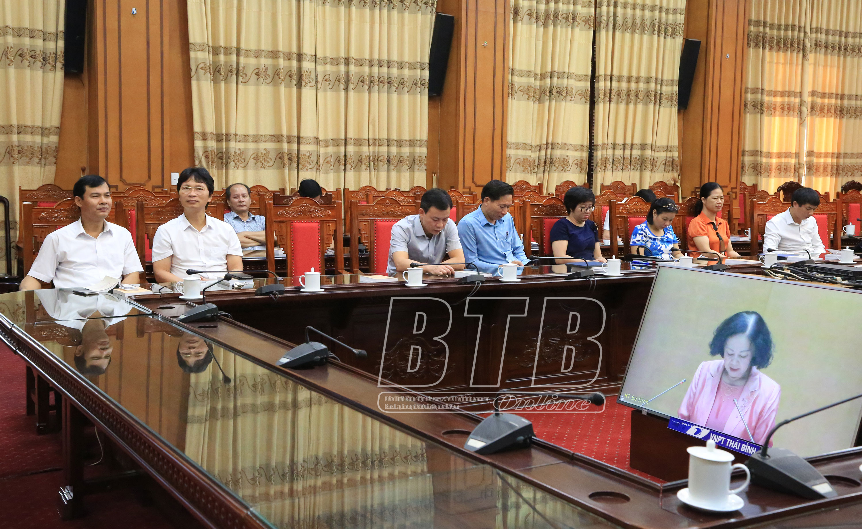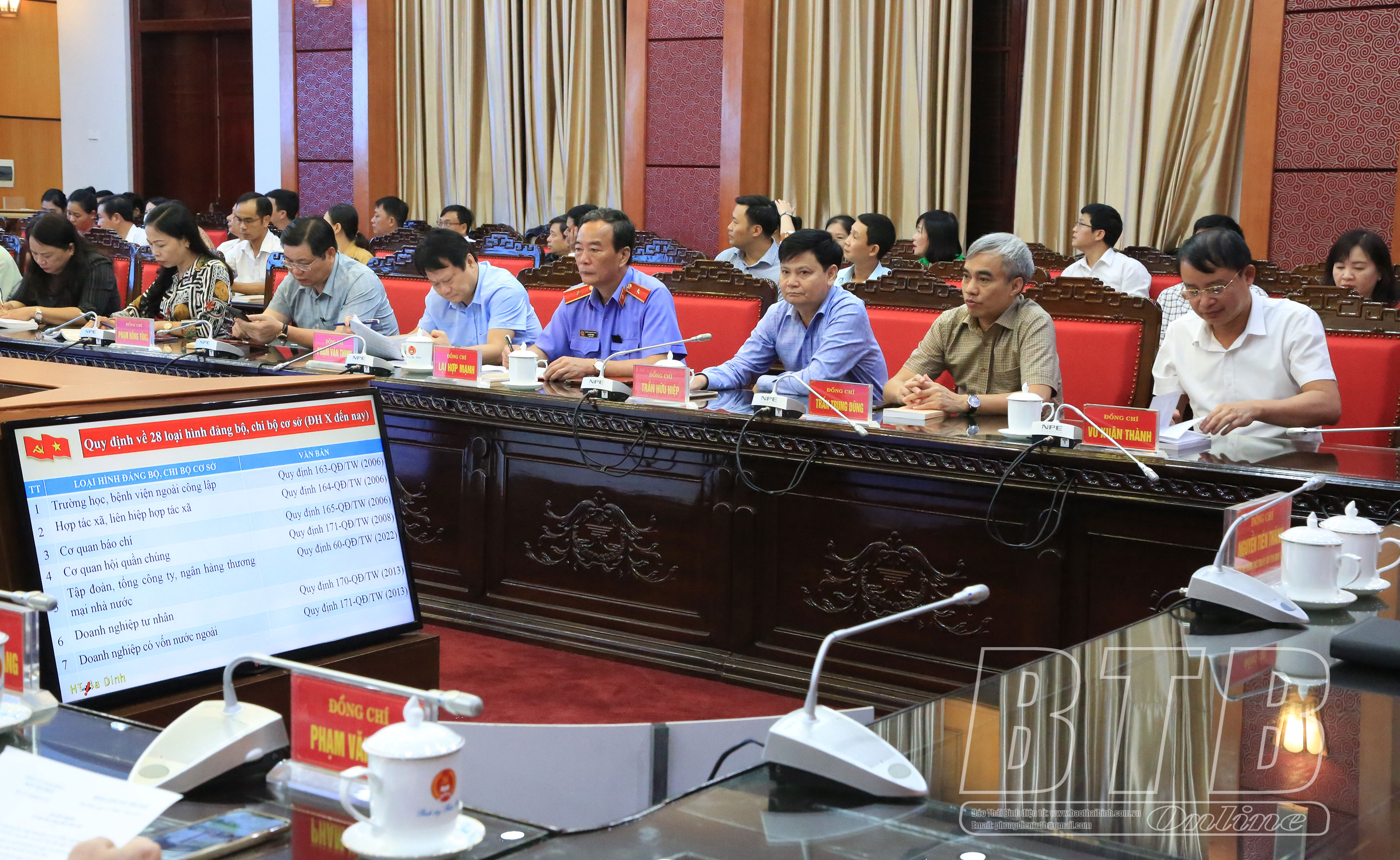 Đại biểu dự hội nghị tại điểm cầu Tỉnh ủy Thái Bình.