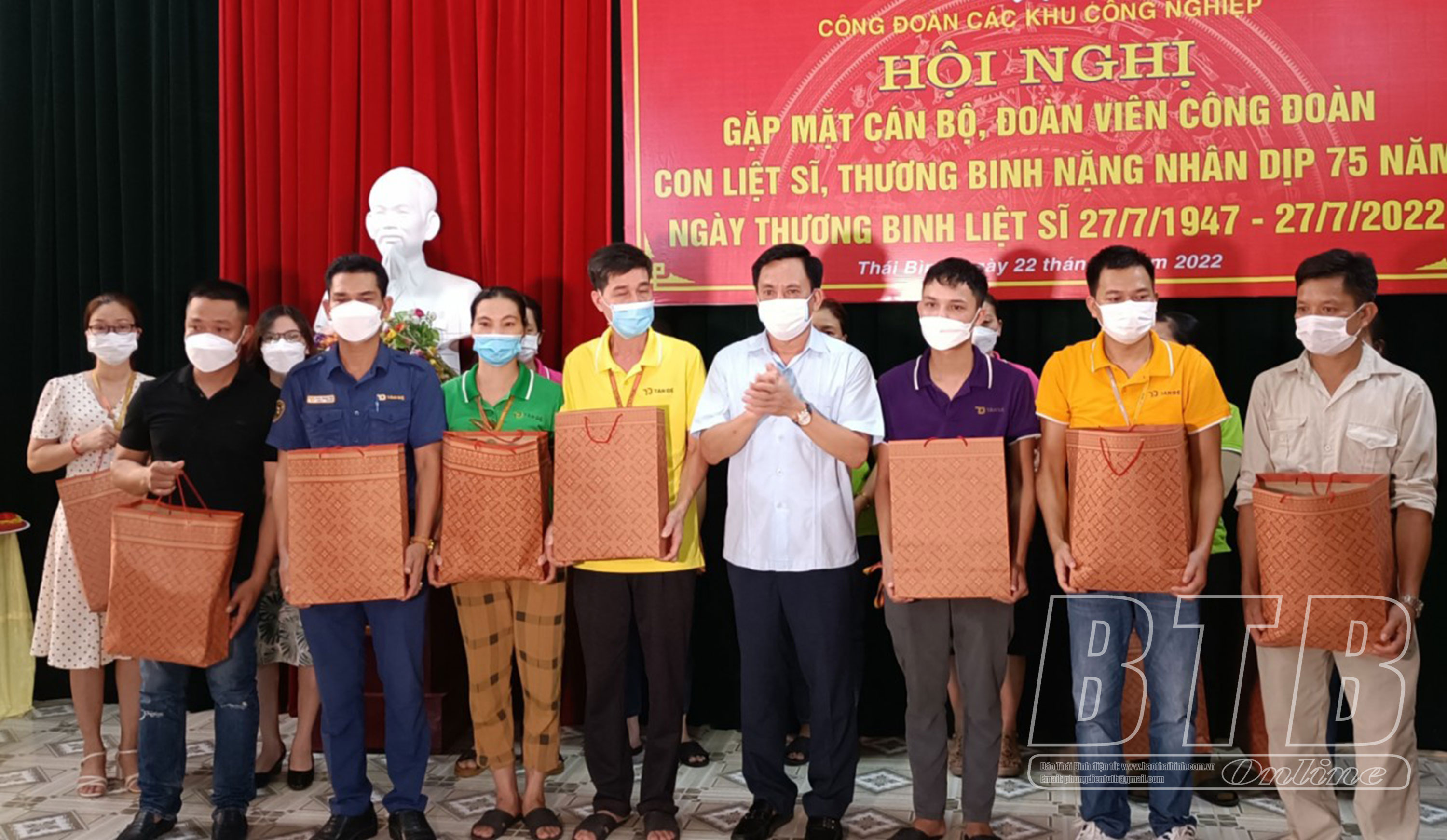 Nhân dịp này, Công đoàn Các khu công nghiệp tỉnh đã trao tặng 177 suất quà với tổng trị giá 88,5 triệu đồng cho các cán bộ, đoàn viên công đoàn của 8 đơn vị là con liệt sĩ, thương binh nặng.