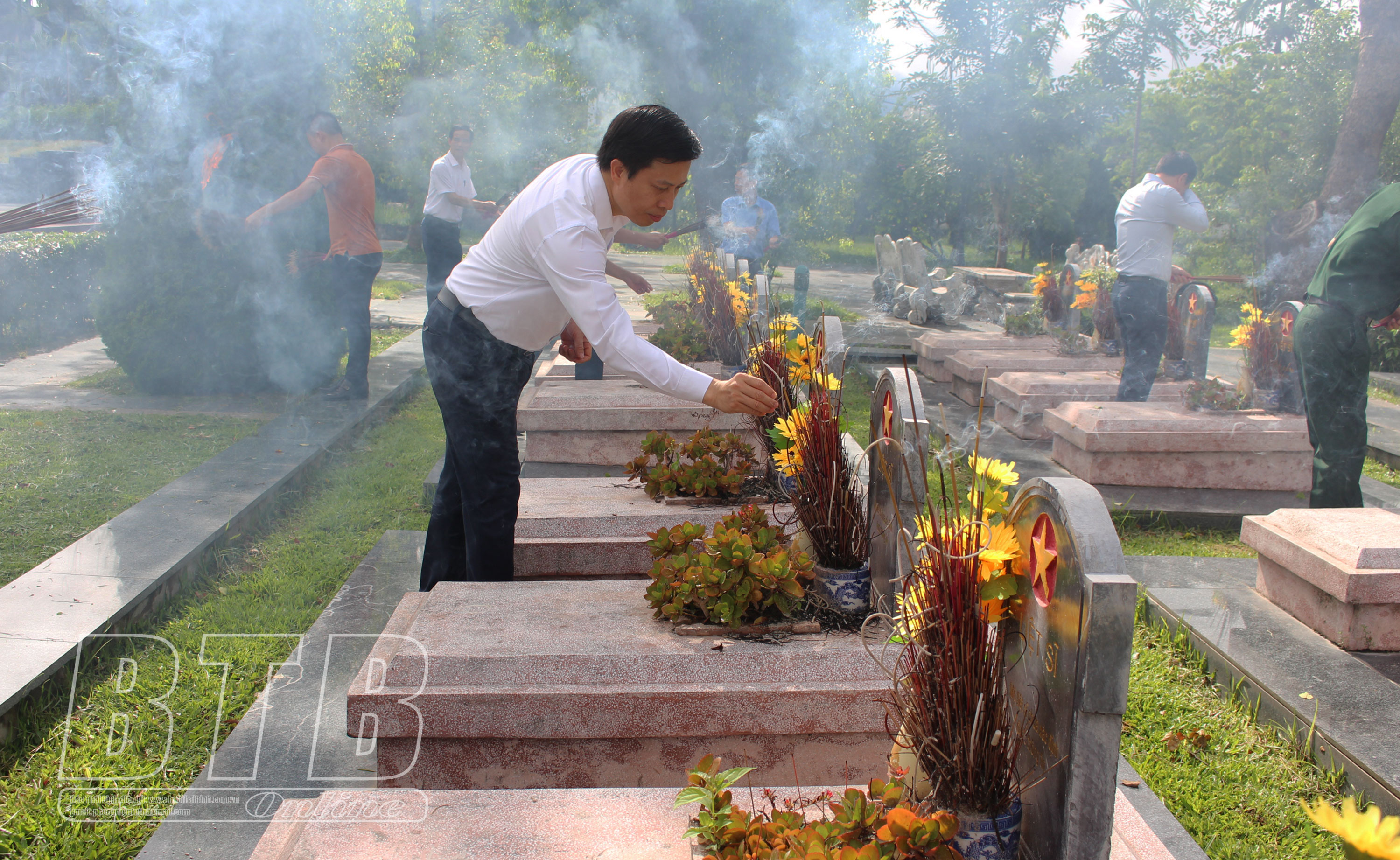 Đồng chí Lại Văn Hoàn, Tỉnh uỷ viên, Phó Chủ tịch UBND tỉnh thắp hương tri ân các anh hùng liệt sĩ tại Nghĩa trang Liệt sĩ A1.