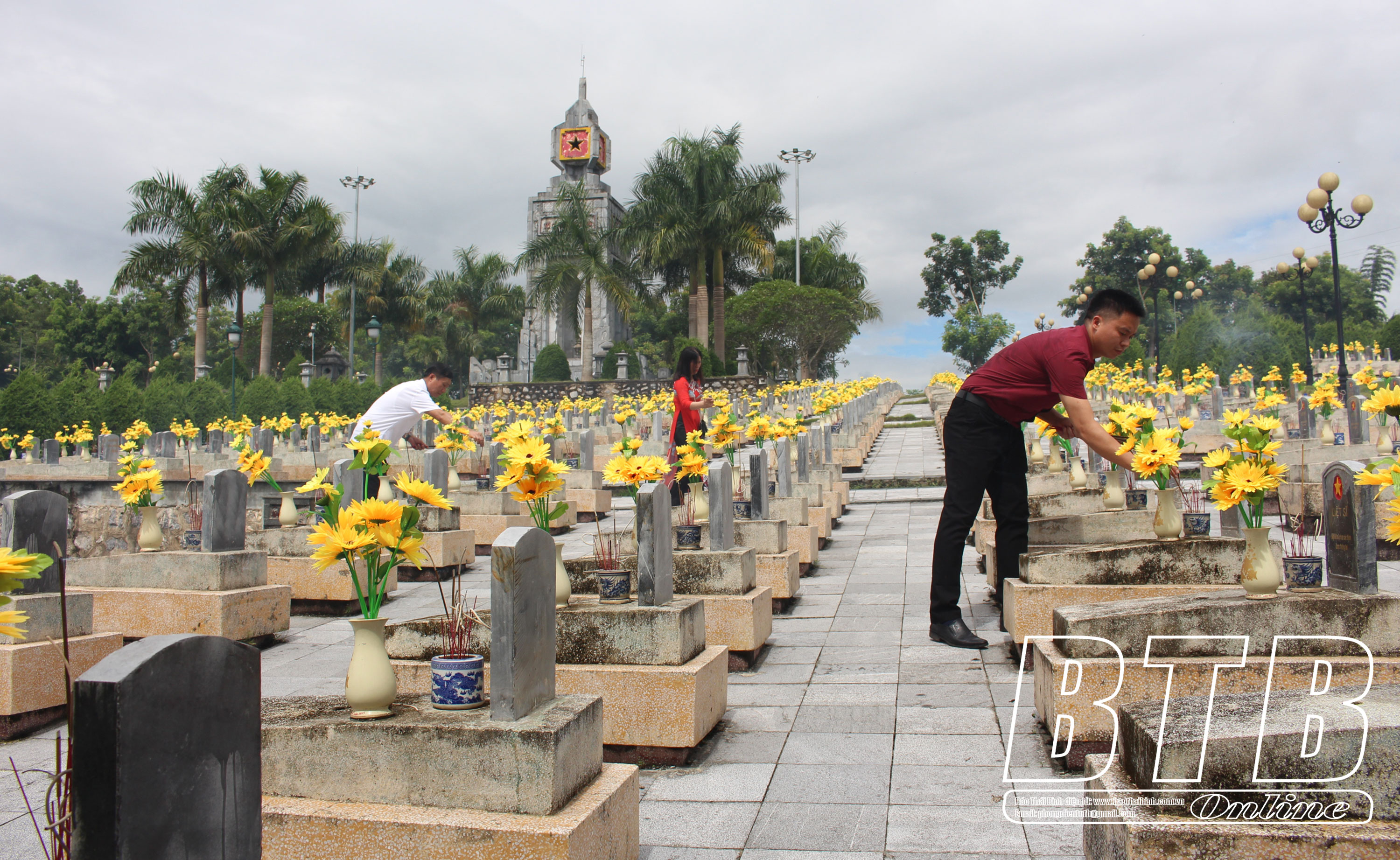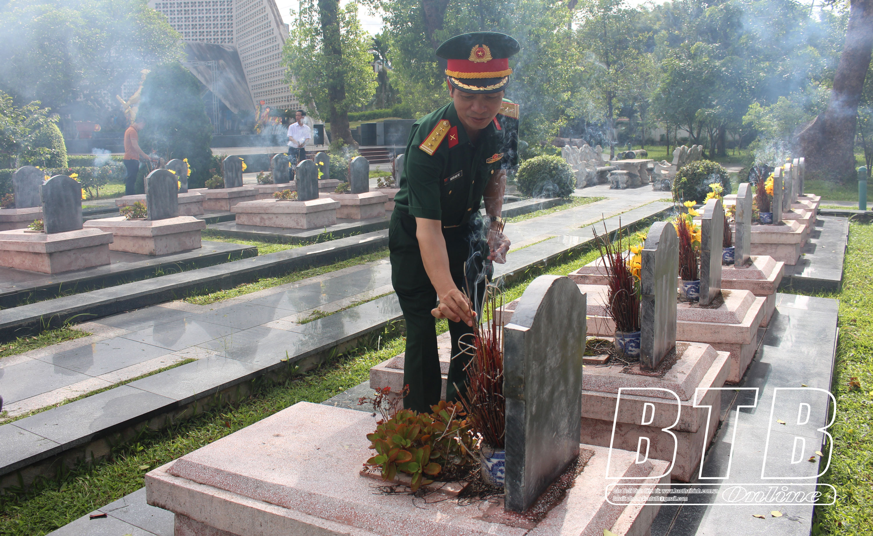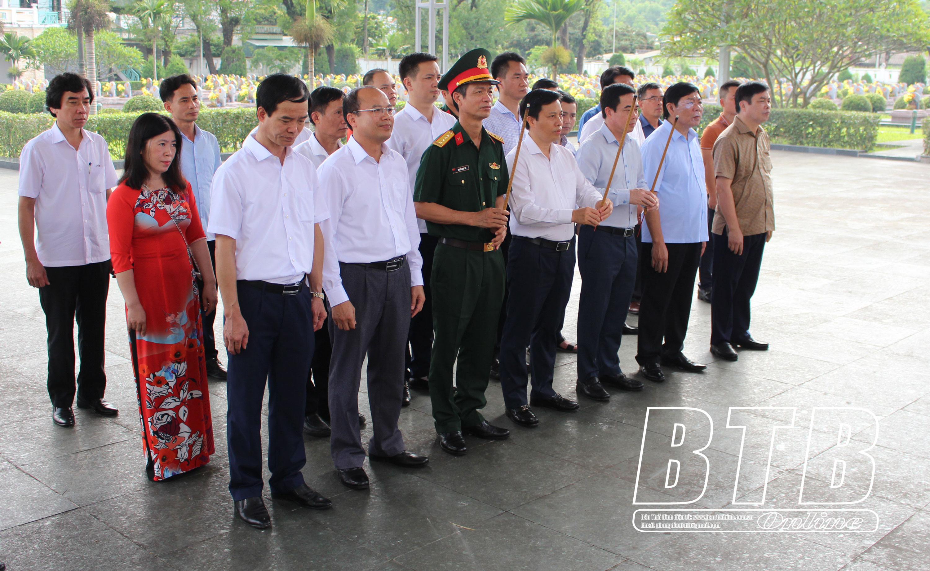 Trong không khí trang nghiêm thành kính, đoàn đại biểu tỉnh đã dâng vòng hoa, dành phút mặc niệm tưởng nhớ công ơn các anh hùng liệt sĩ và thắp hương từng phần mộ liệt sĩ.