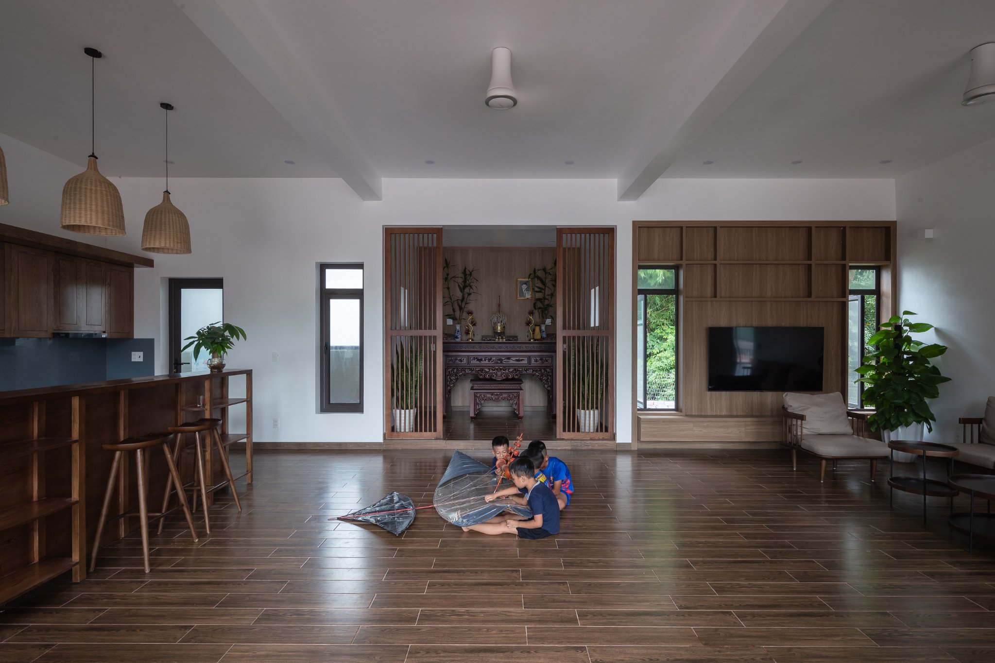 Căn nhà được thiết kế cho cặp vợ chồng trẻ cùng 2 người con trai và người mẹ. Từ cấu trúc ngôi nhà 5 gian truyền thống, ngôi nhà lấy gian trung tâm chính làm nơi thờ cúng tổ tiên. Nơi con cháu hướng về cội nguồn và được quây quần sum họp.