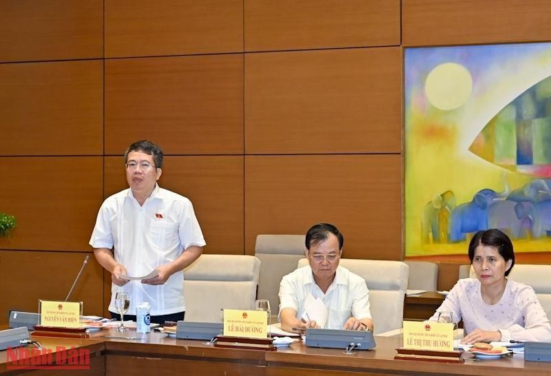 Viện trưởng Viện Nghiên cứu lập pháp Nguyễn Văn Hiển đọc báo cáo tại buổi làm việc. (Ảnh Duy Linh).