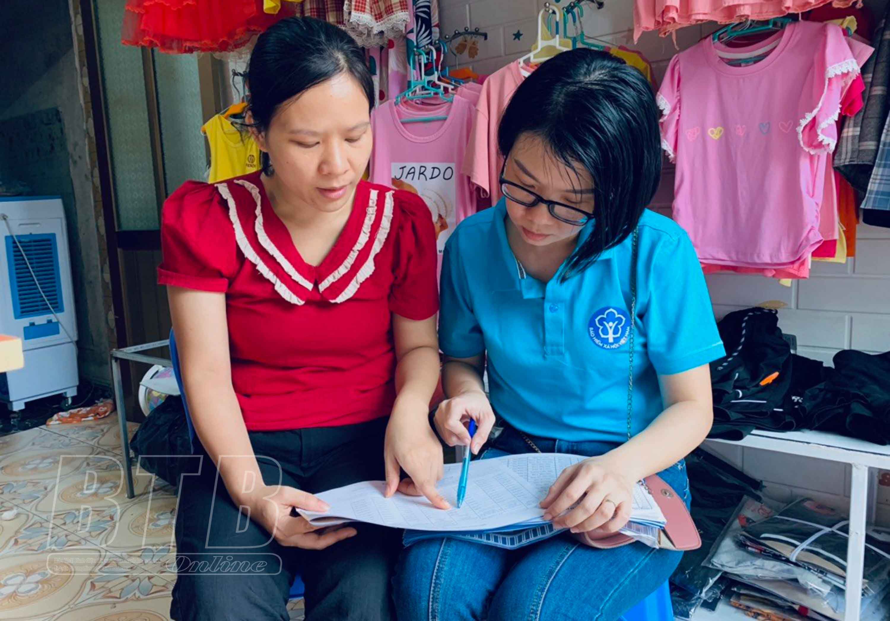Cán bộ ngành BHXH Thái Bình tuyên truyền về chính sách BHXH, BHYT tới người dân.