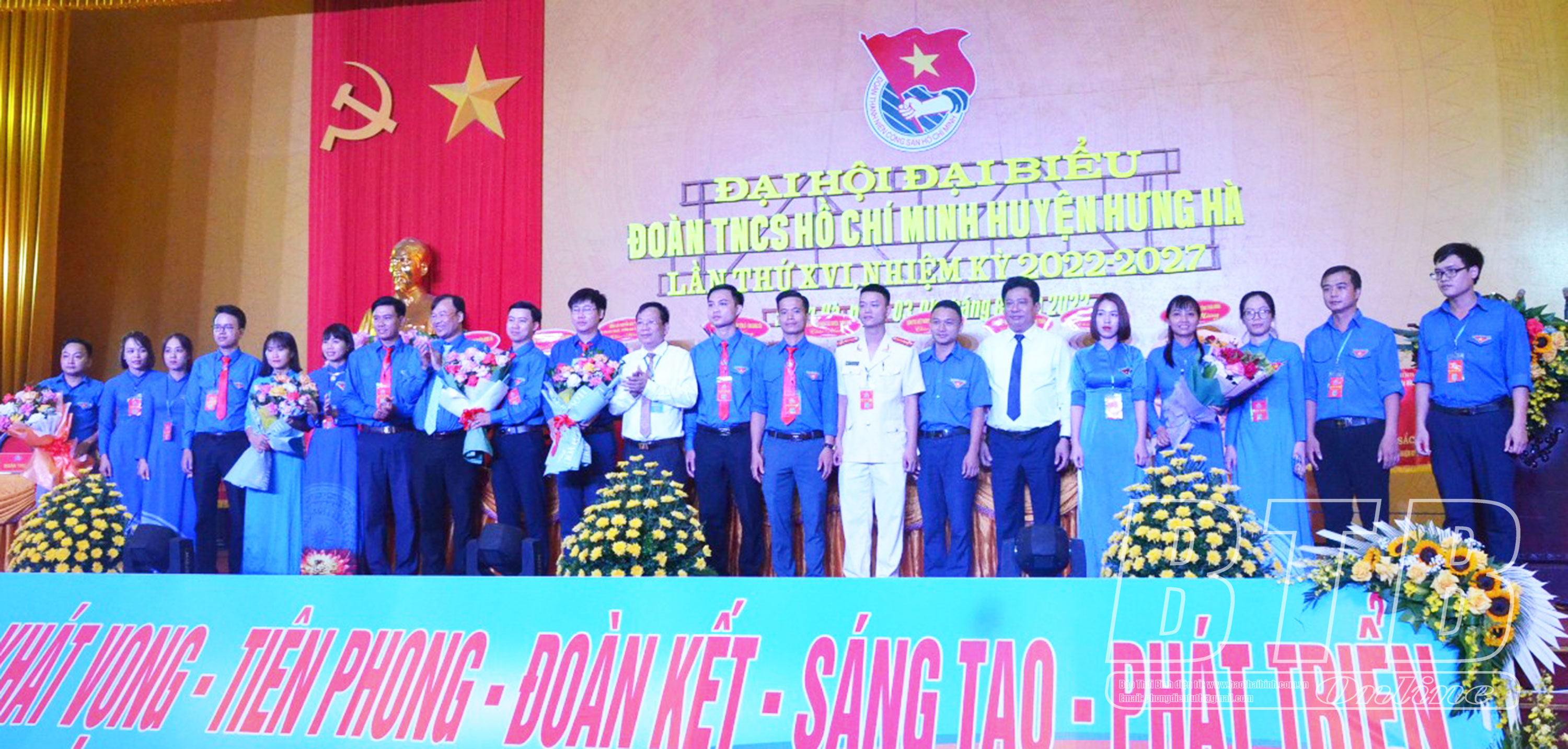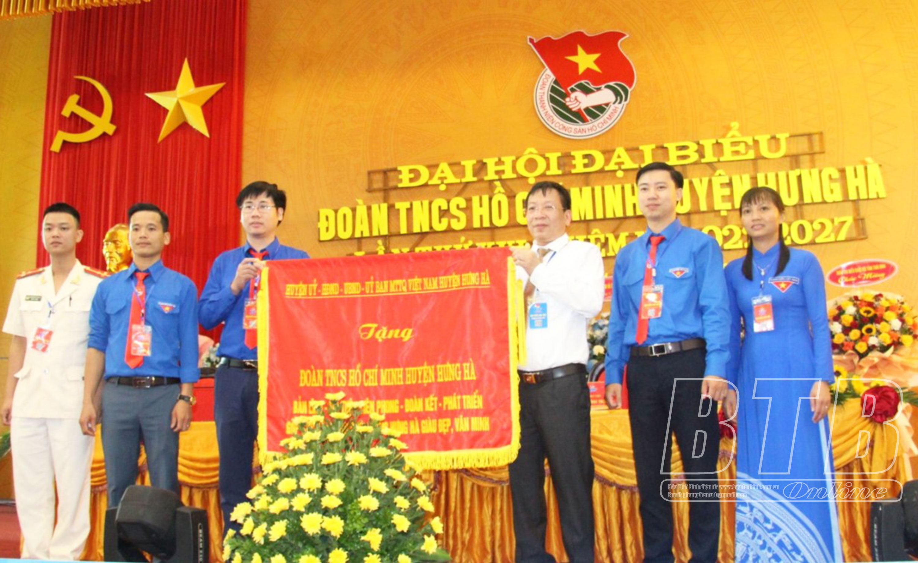 Lãnh đạo Tỉnh đoàn trao tặng cờ thi đua cho Đoàn TNCS Hồ Chí Minh huyện Hưng Hà.Lãnh đạo huyện Hưng Hà tặng bức trướng cho Đoàn TNCS Hồ Chí Minh huyện Hưng Hà.Các đồng chí lãnh đạo Tỉnh đoàn, huyện Hưng Hà tặng hoa chúc mừng Ban Chấp hành Đoàn TNCS Hồ Chí Minh huyện Hưng Hà khóa mới.
