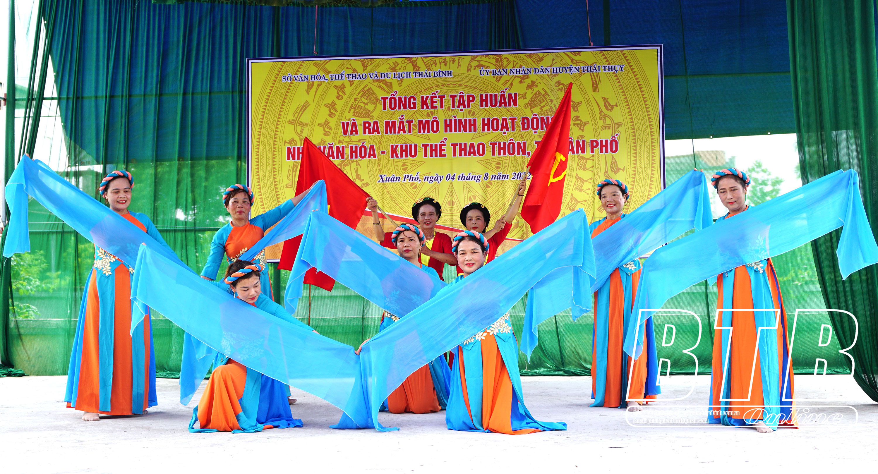 Sau thời gian 6 ngày diễn ra lớp tập huấn, các thành viên trong ban chủ nhiệm của các nhà văn hóa khu dân cư kiểu mẫu, nhà văn hóa được lựa chọn để triển khai đề án trên địa bàn huyện Thái Thụy đã báo cáo kết quả đạt được qua chương trình văn nghệ tại lễ tổng kết.