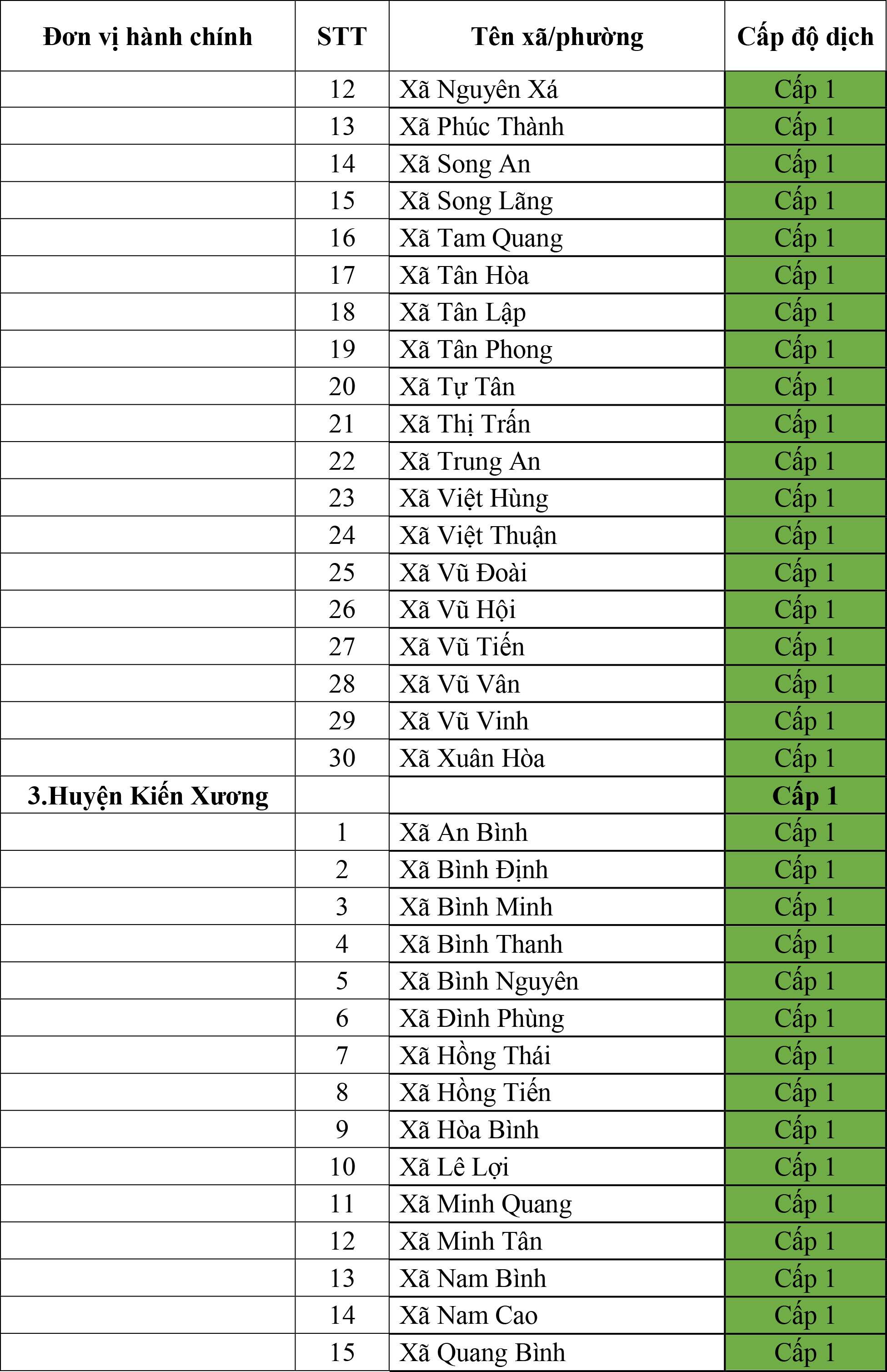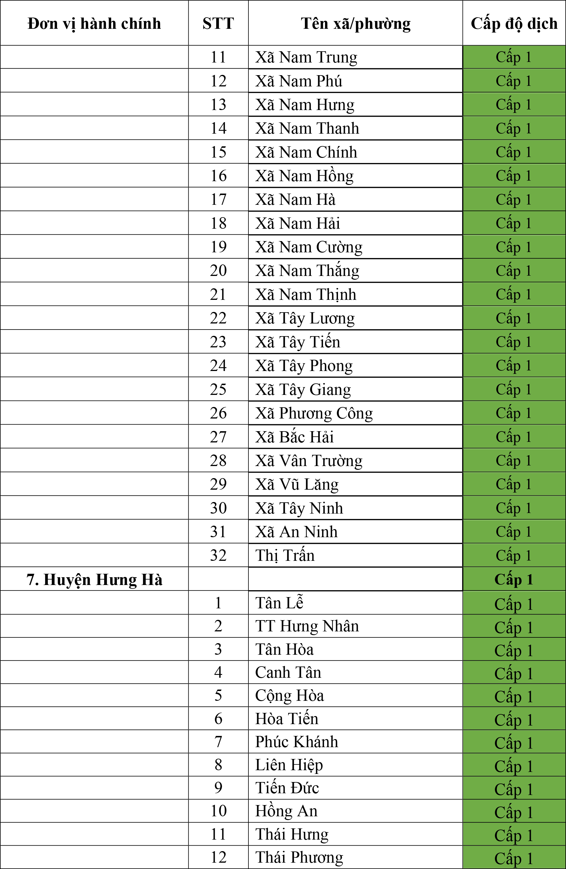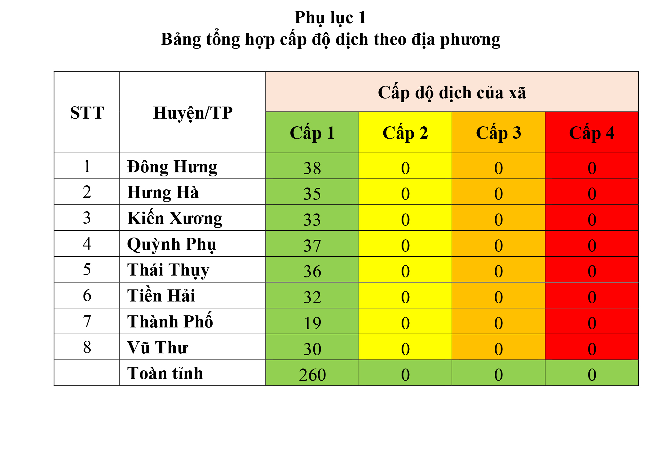 Thông báo cấp độ dịch tỉnh Thái Bình (ngày12/8/2022)