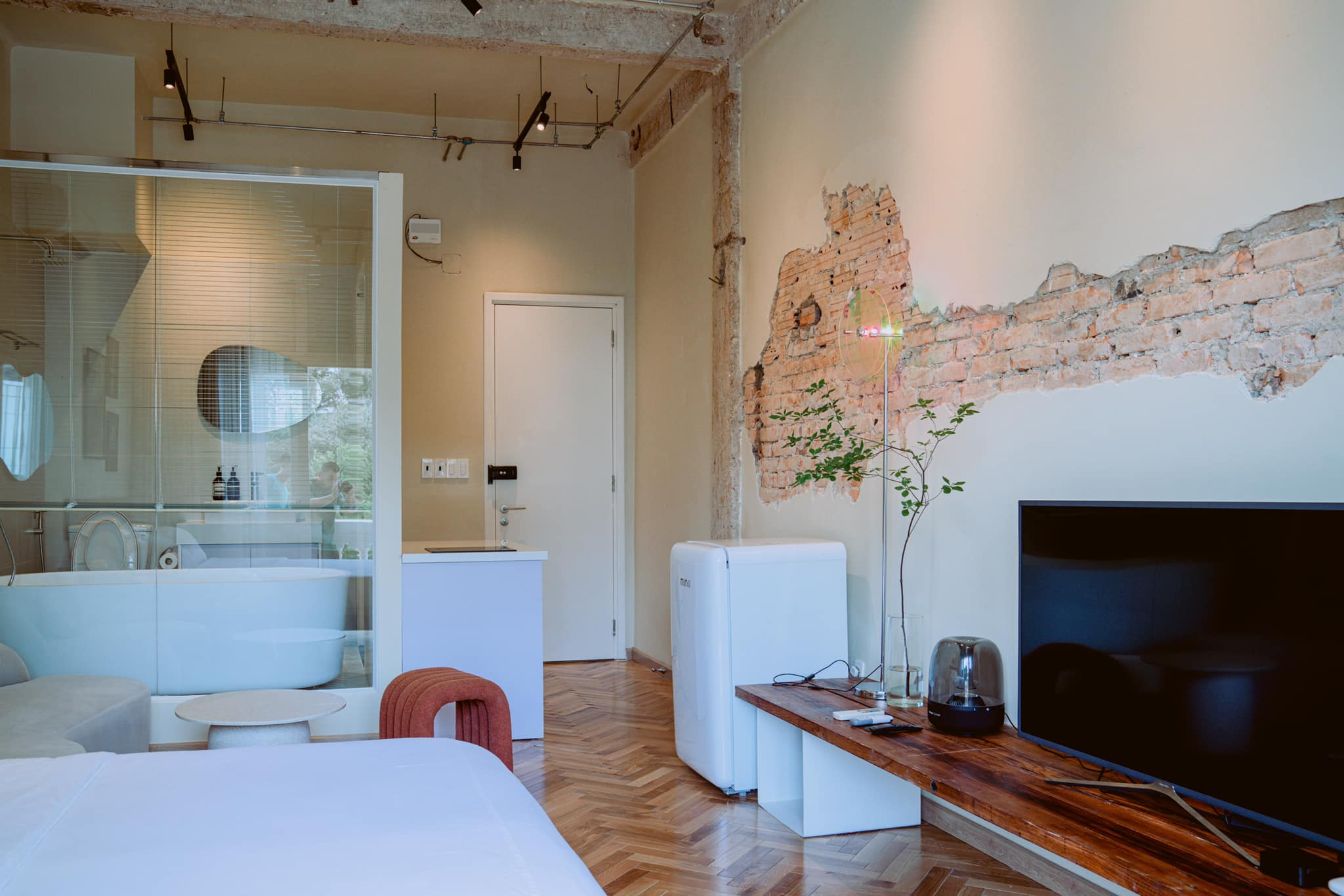 Căn hộ studio được gia chủ cải tạo lại với tone màu trung tính, vật liệu sử dụng gỗ cho không gian mộc mạc, gần gũi.