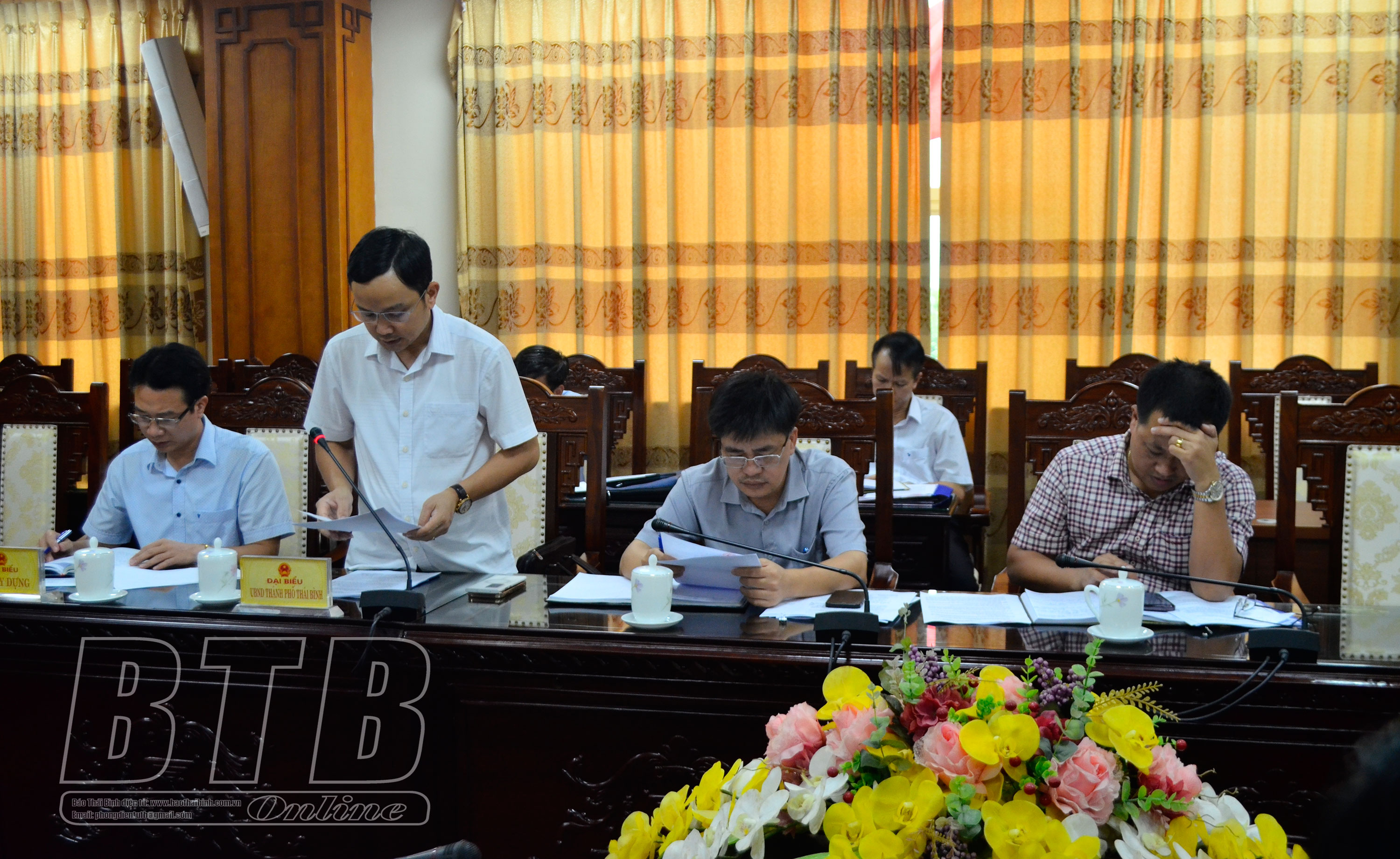 Lãnh đạo UBND thành phố báo cáo tại cuộc họp.