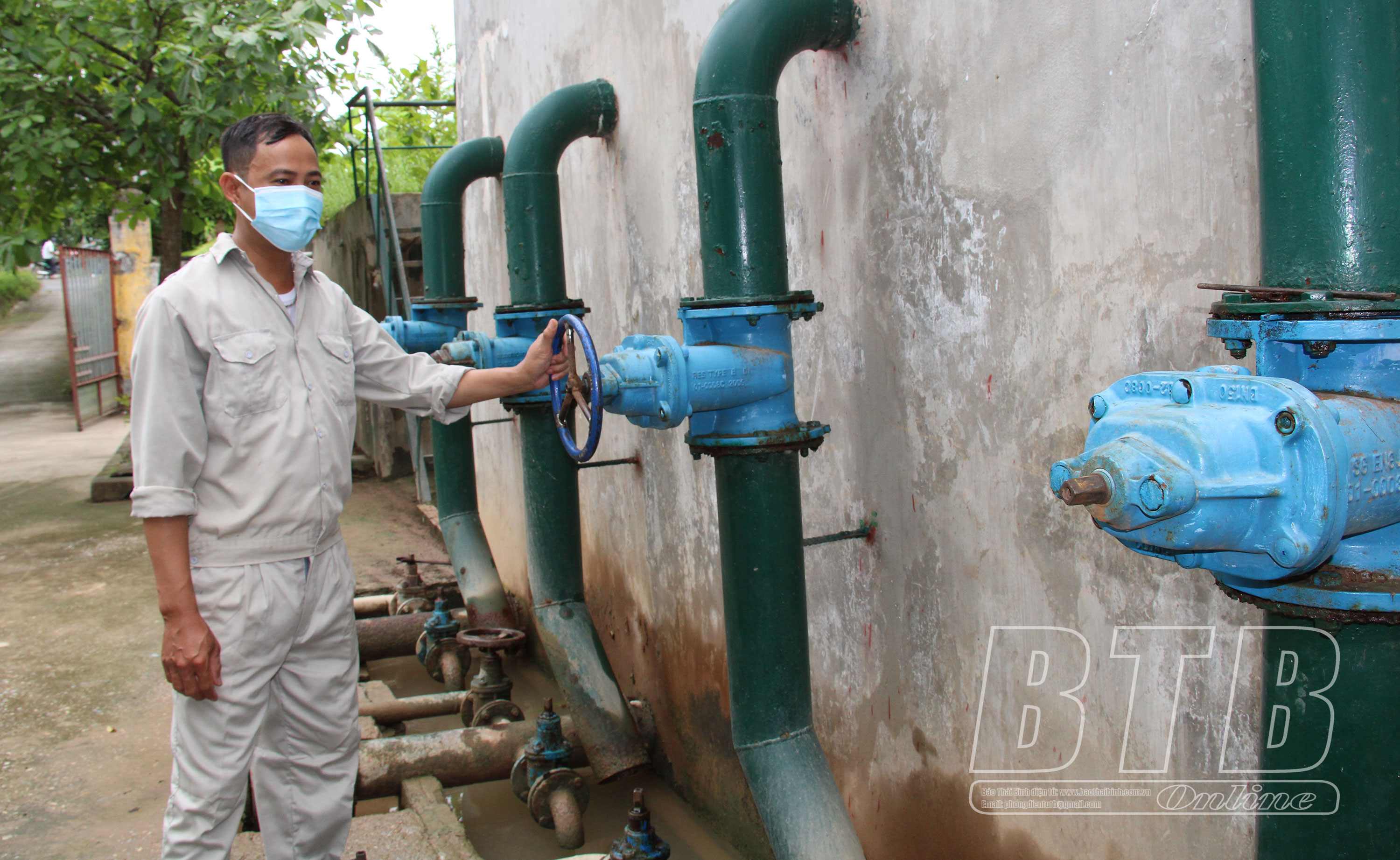 Công nhân nhà máy nước sạch Minh Tân của Công ty Cổ phần Bitexco Nam Long (Kiến Xương) vận hành hệ thống máy bơm nước cung cấp cho nhân dân.