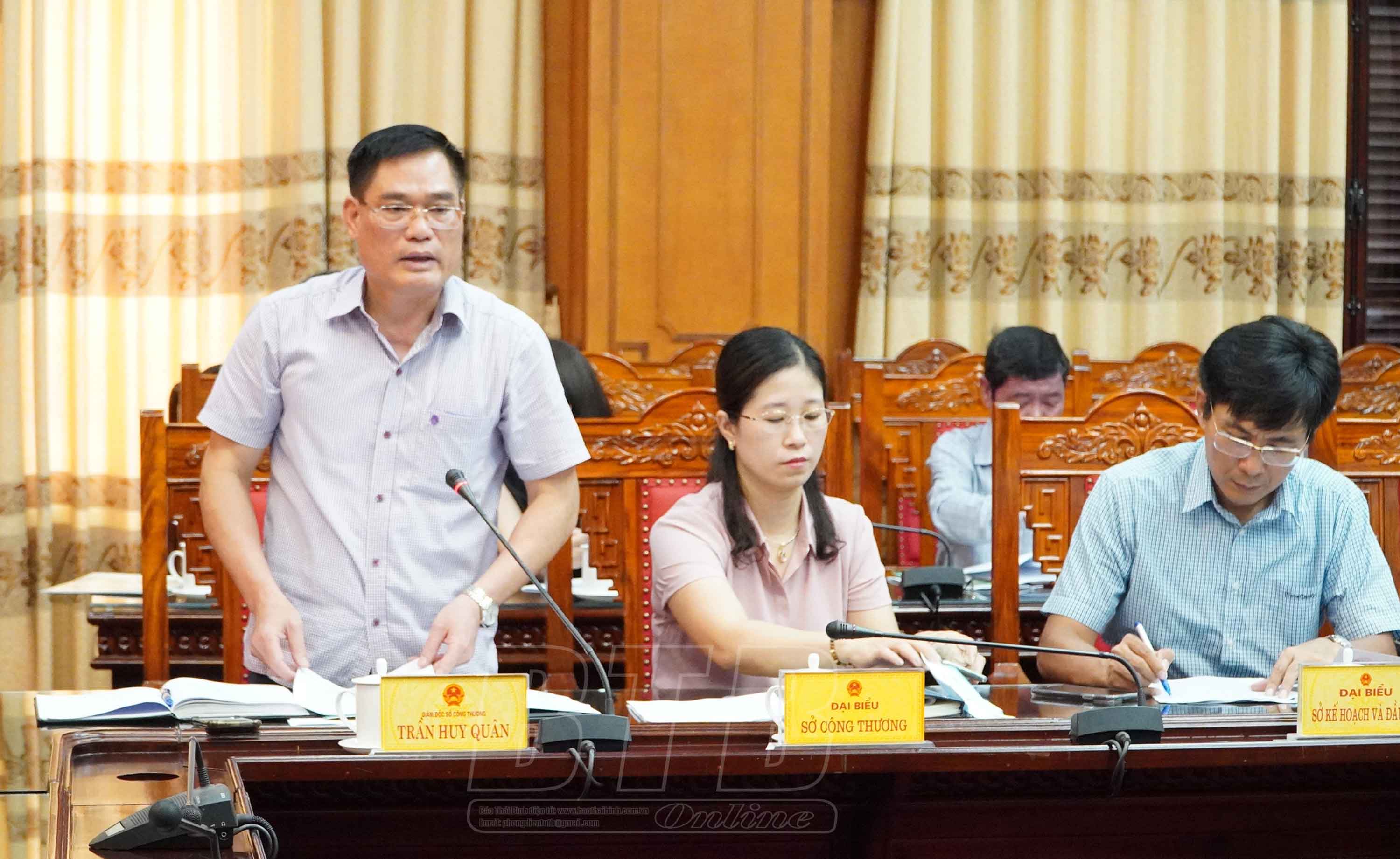 Lãnh đạo Sở Công Thương báo cáo công tác chuẩn bị tổ chức hội nghị kết nối cung cầu.