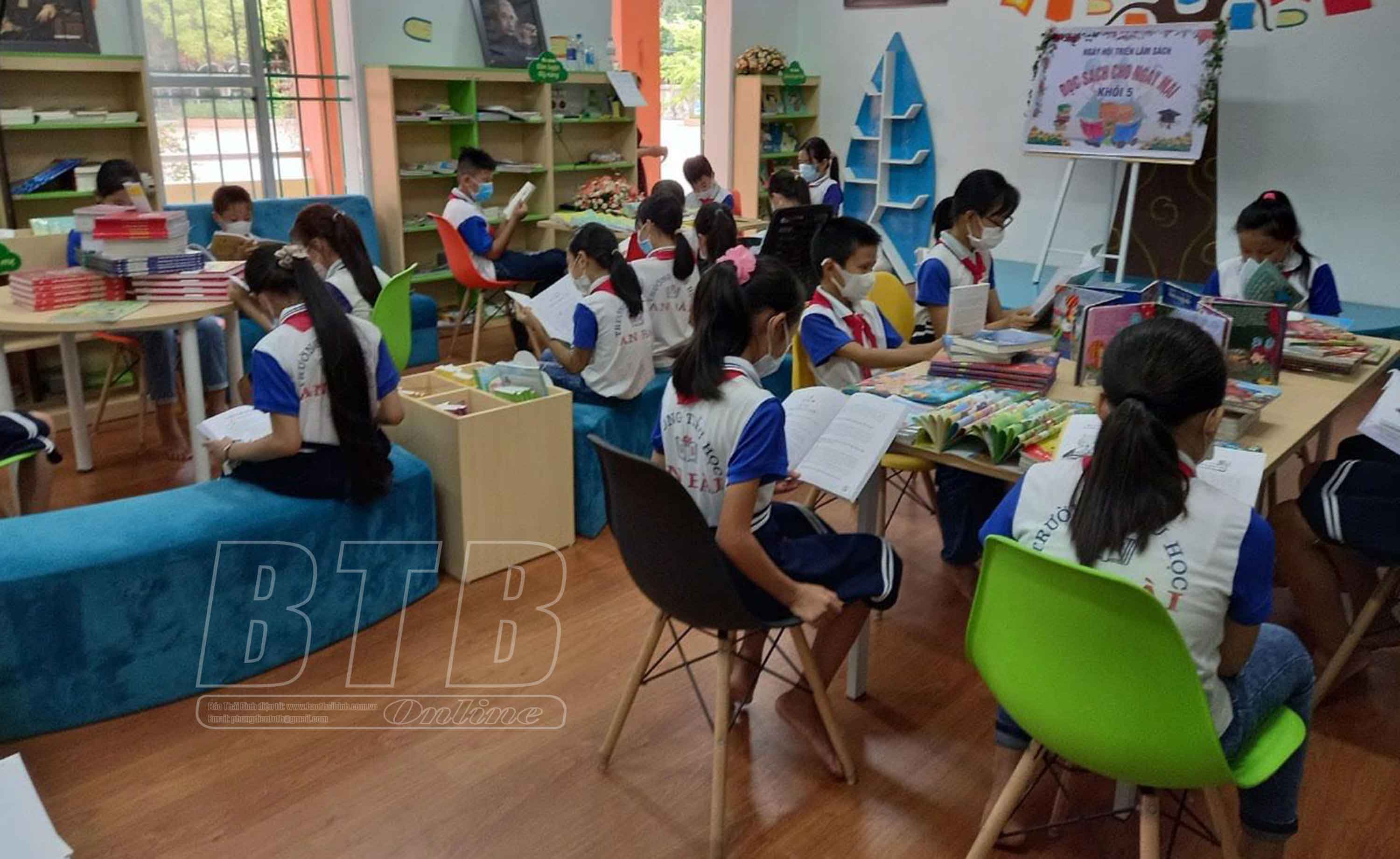 Học sinh Trường Tiểu học An Bài (Quỳnh Phụ) đọc sách tại thư viện mở của nhà trường.