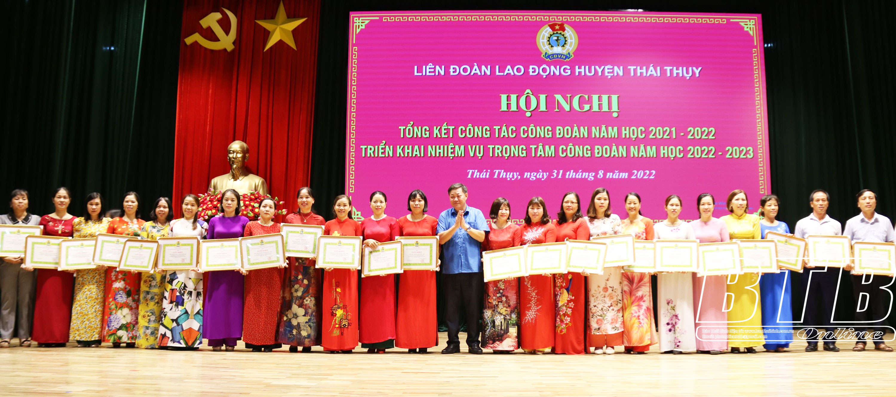 Hiện nay, công đoàn khối trường học huyện Thái Thụy có 105 công đoàn cơ sở với hơn 3.000 đoàn viên. Năm học vừa qua, do bị ảnh hưởng của dịch Covid-19 nên đời sống của đoàn viên, cán bộ nhà giáo (CBNG) bị ảnh hưởng. Trước những khó khăn của CBNG, Liên đoàn Lao động huyện đã tập trung chỉ đạo các công đoàn cơ sở khối trường học thực hiện chăm lo đời sống vật chất, tinh thần và bảo vệ quyền, lợi ích chính đáng cho CBNG. Đồng thời, vận động CBNG và người lao động trong ngành tích cực tham gia các phong trào thi đua và các cuộc vận động mang tính xã hội lớn. Trong đó có phong trào “Mỗi thầy giáo, cô giáo nhận chăm sóc đỡ đầu từ 1 đến 2 học sinh khó khăn” tiếp tục được duy trì, năm học vừa qua có hơn 3.000 CBNG nhận giúp 2.986 em học sinh với số tiền trên 1 tỷ đồng...