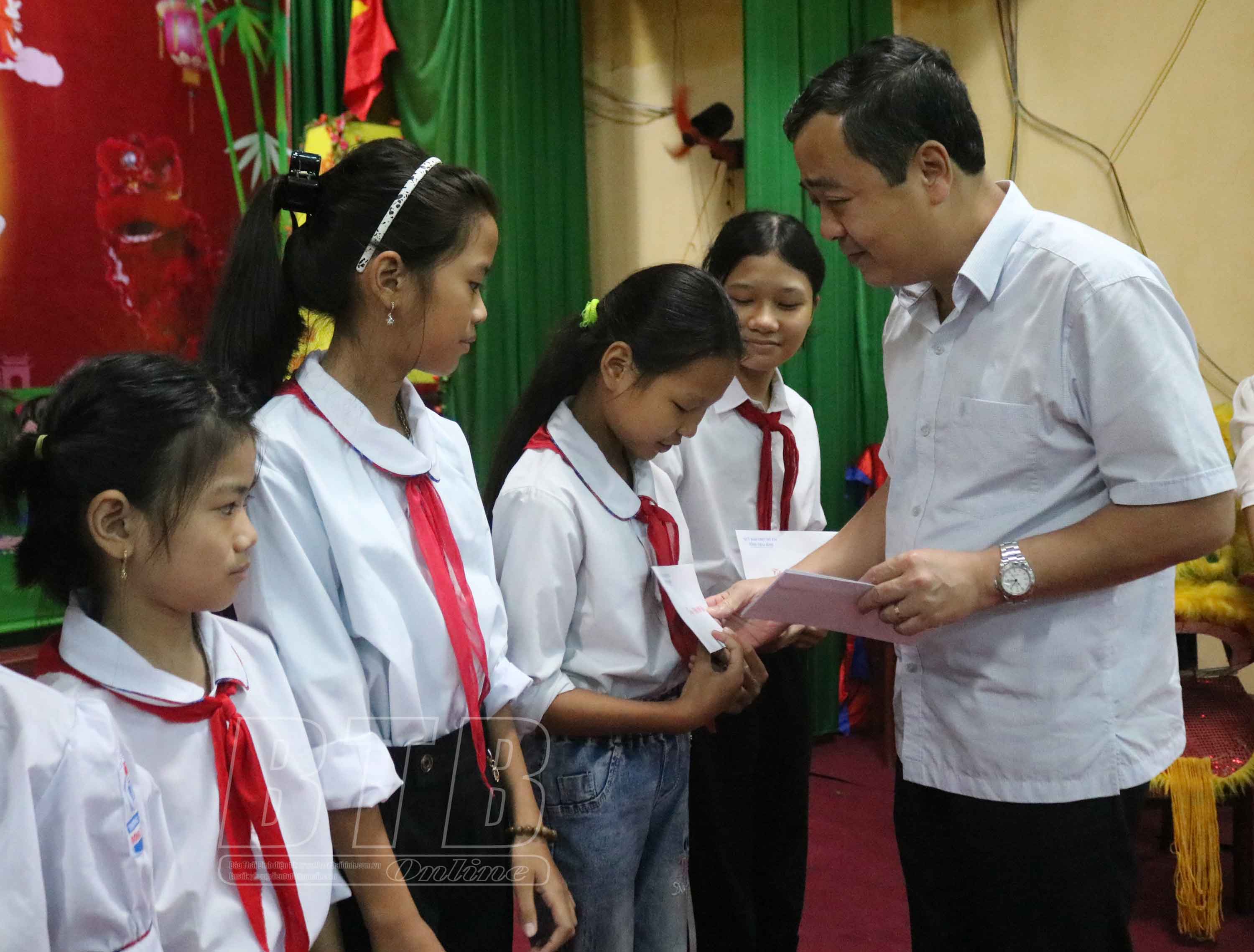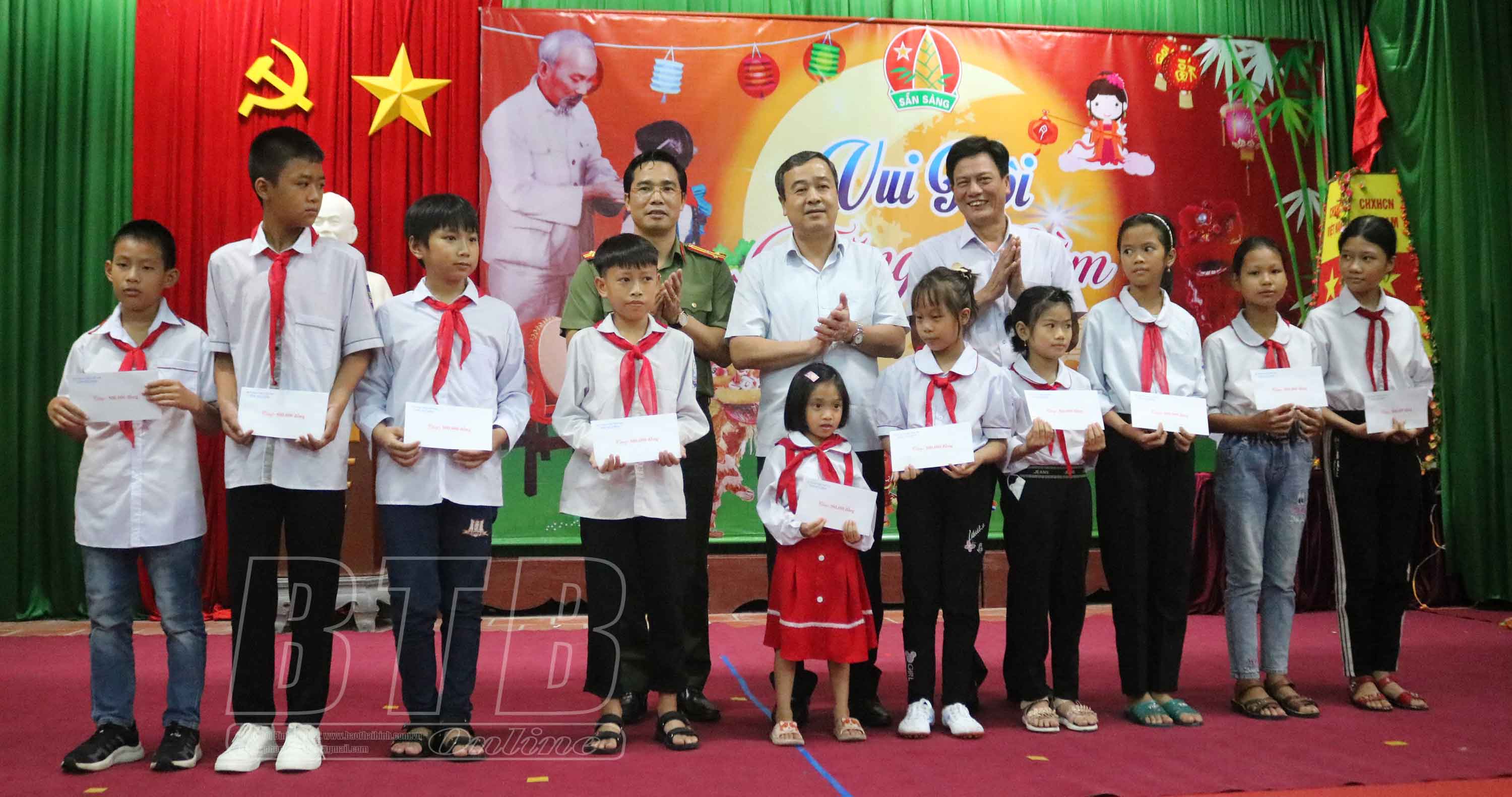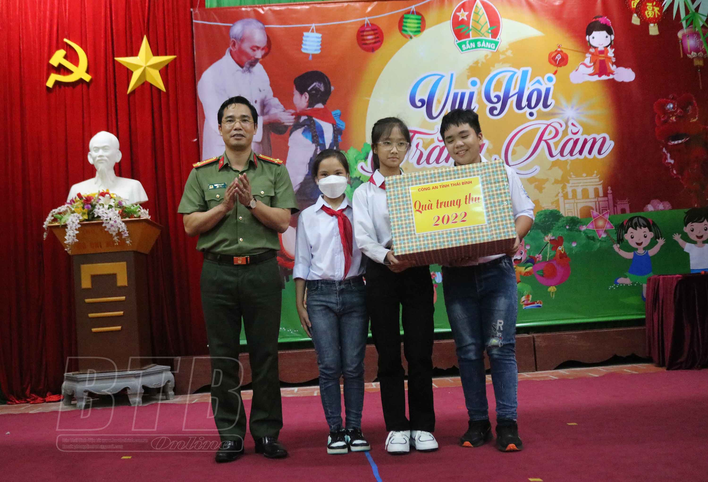Nhân dịp tết Trung thu, đồng chí Bí thư Tỉnh ủy đã tặng quà cho các cháu thiếu nhi và trao 10 suất quà cho các cháu học sinh có hoàn cảnh khó khăn, vươn lên trong học tập tại địa phương. Đồng chí Giám đốc Công an tỉnh cũng tặng quà cho các cháu thiếu nhi xã Đông Phương.