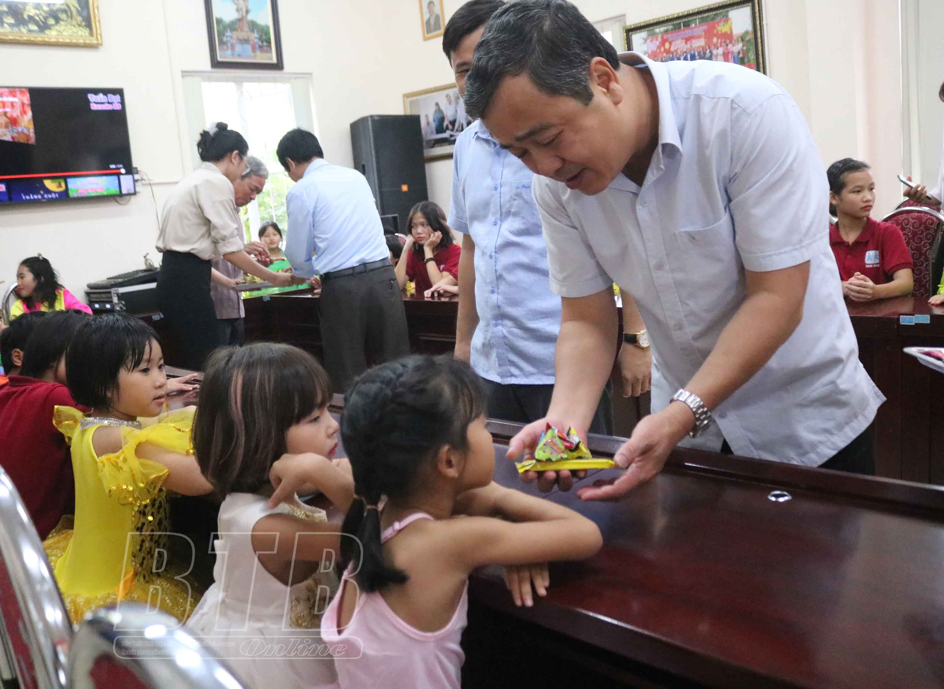Tại buổi trao quà, đồng chí Ngô Đông Hải, Ủy viên Ban Chấp hành Trung ương Đảng, Bí thư Tỉnh ủy và các thành viên trong đoàn đã thăm hỏi sức khỏe, tình hình học tập của các cháu thiếu nhi. Chia sẻ niềm vui với các cháu trong dịp tết Trung thu, đồng chí Bí thư Tỉnh ủy chúc các cháu đón tết Trung thu vui vẻ, mong các cháu luôn chăm ngoan, học giỏi; không ngừng tu dưỡng, rèn luyện để xứng đáng là con ngoan, trò giỏi, cháu ngoan Bác Hồ. Đồng chí đề nghị chính quyền địa phương tiếp tục quan tâm, chăm lo cho trẻ em, nhất là trẻ em có hoàn cảnh đặc biệt khó khăn để các cháu được phát triển toàn diện.