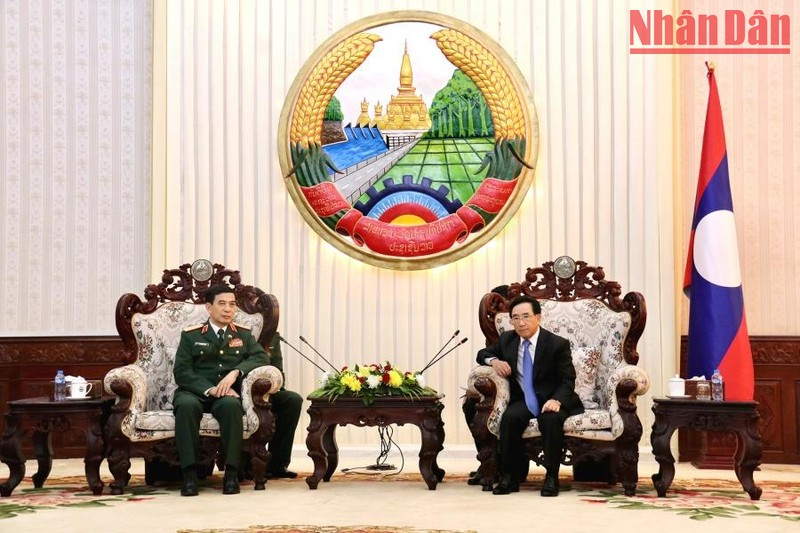 Trước đó, chiều cùng ngày, diễn ra hội đàm cấp cao giữa hai Đoàn đại biểu Quốc phòng hai nước do Đại tướng Phan Văn Giang và Đại tướng Chansamone Chanyalath chủ trì.