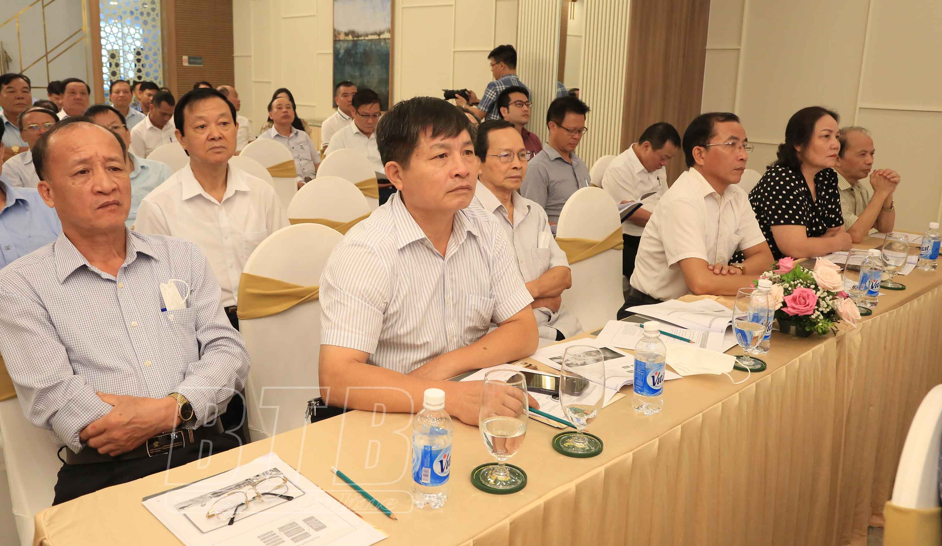 Các đồng chí: Nguyễn Quang Vinh, Phó Chủ tịch Liên đoàn Thương mại và Công nghiệp Việt Nam; Nguyễn Tiến Thành, Phó Bí thư thường trực Tỉnh ủy, Chủ tịch HĐND tỉnh; Nguyễn Khắc Thận, Phó Bí thư Tỉnh ủy, Chủ tịch UBND tỉnh; Đặng Thanh Giang, Ủy viên Ban Thường vụ Tỉnh ủy, Phó Chủ tịch thường trực HĐND tỉnh; Trần Thị Bích Hằng, Tỉnh ủy viên, Phó Chủ tịch UBND tỉnh cùng đại diện lãnh đạo các sở, ngành, địa phương, đại diện các doanh nghiệp dự hội nghị.
