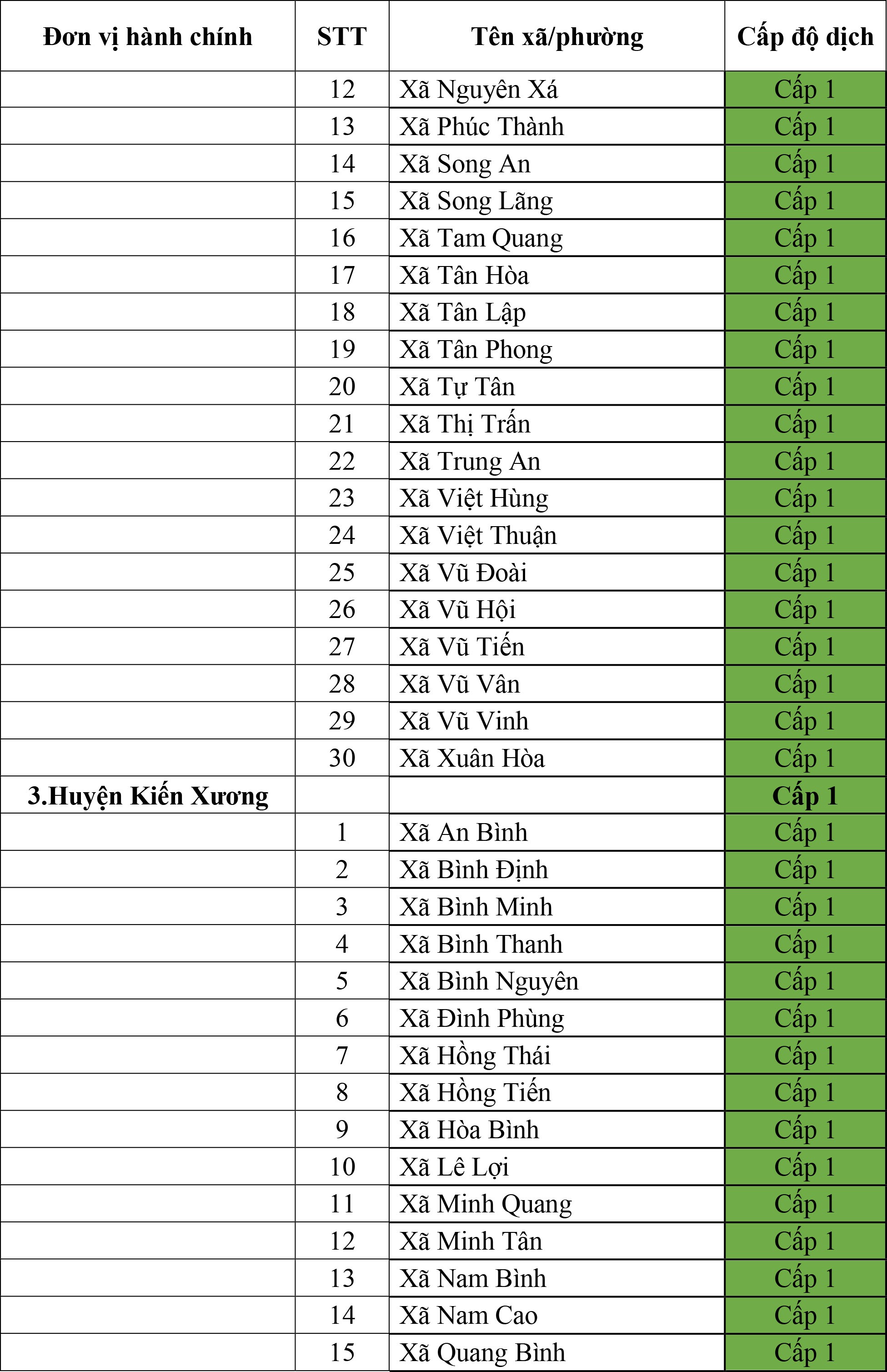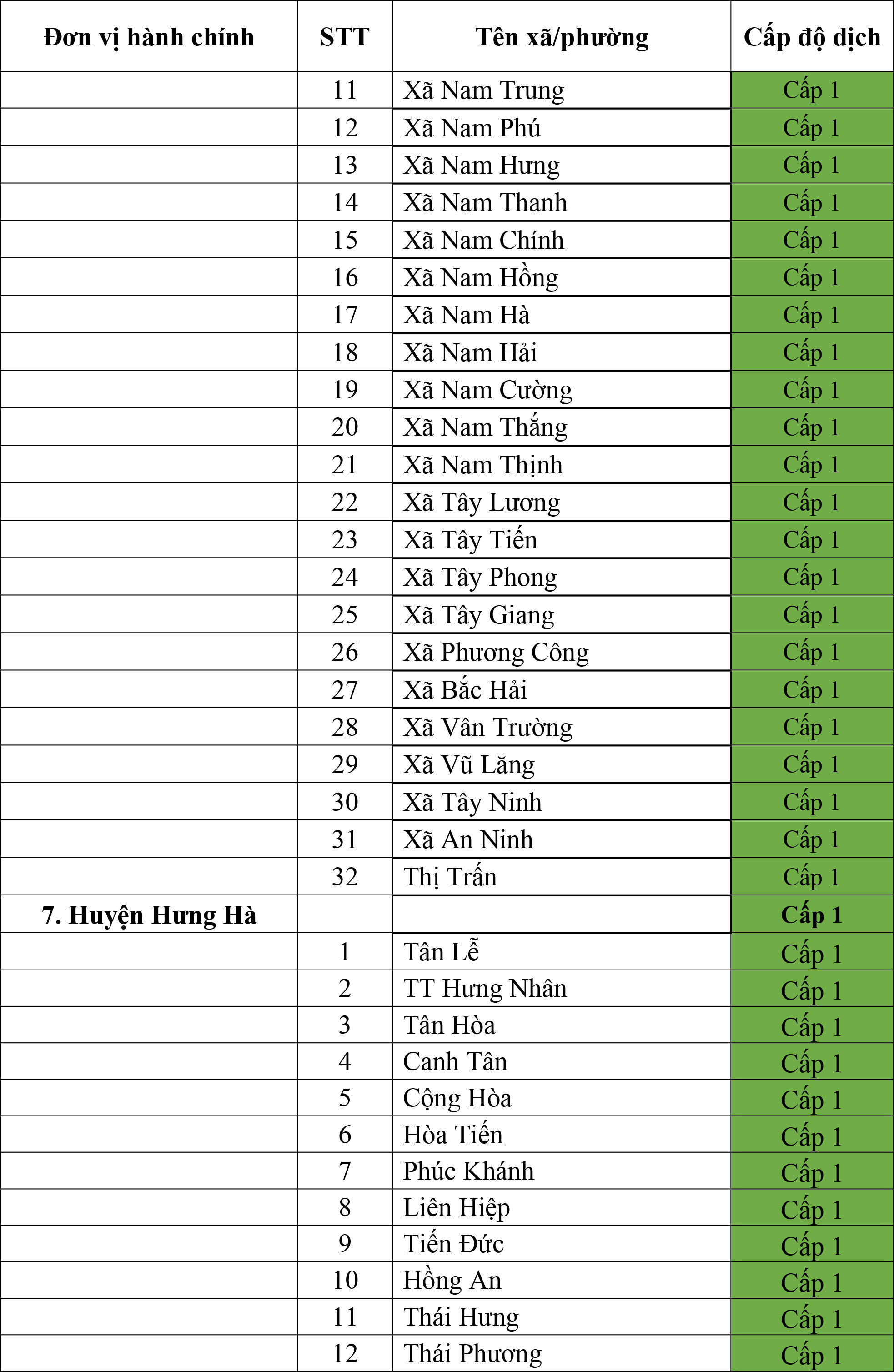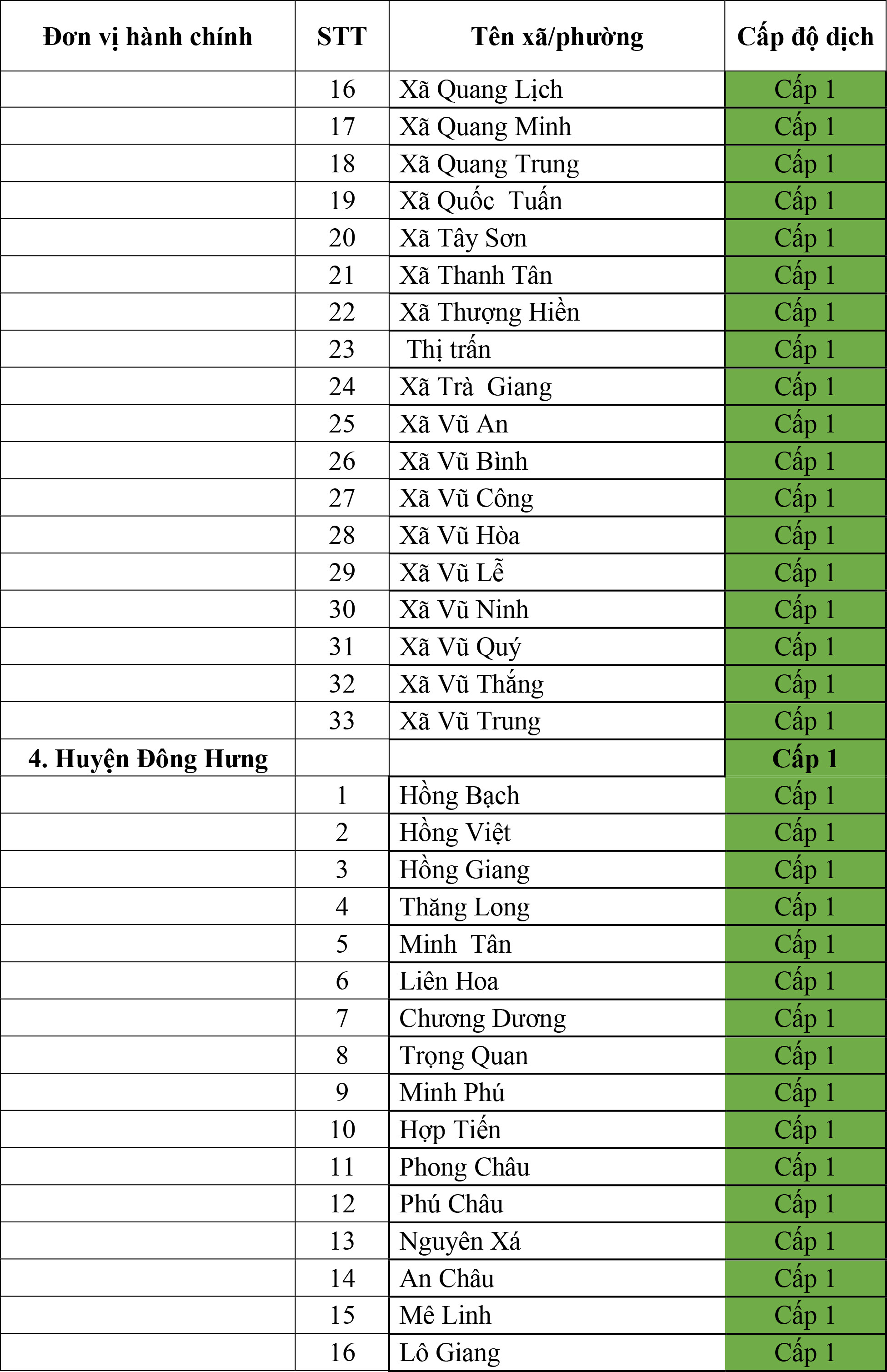 Thông báo cấp độ dịch tỉnh Thái Bình (ngày 21/9/2022)
