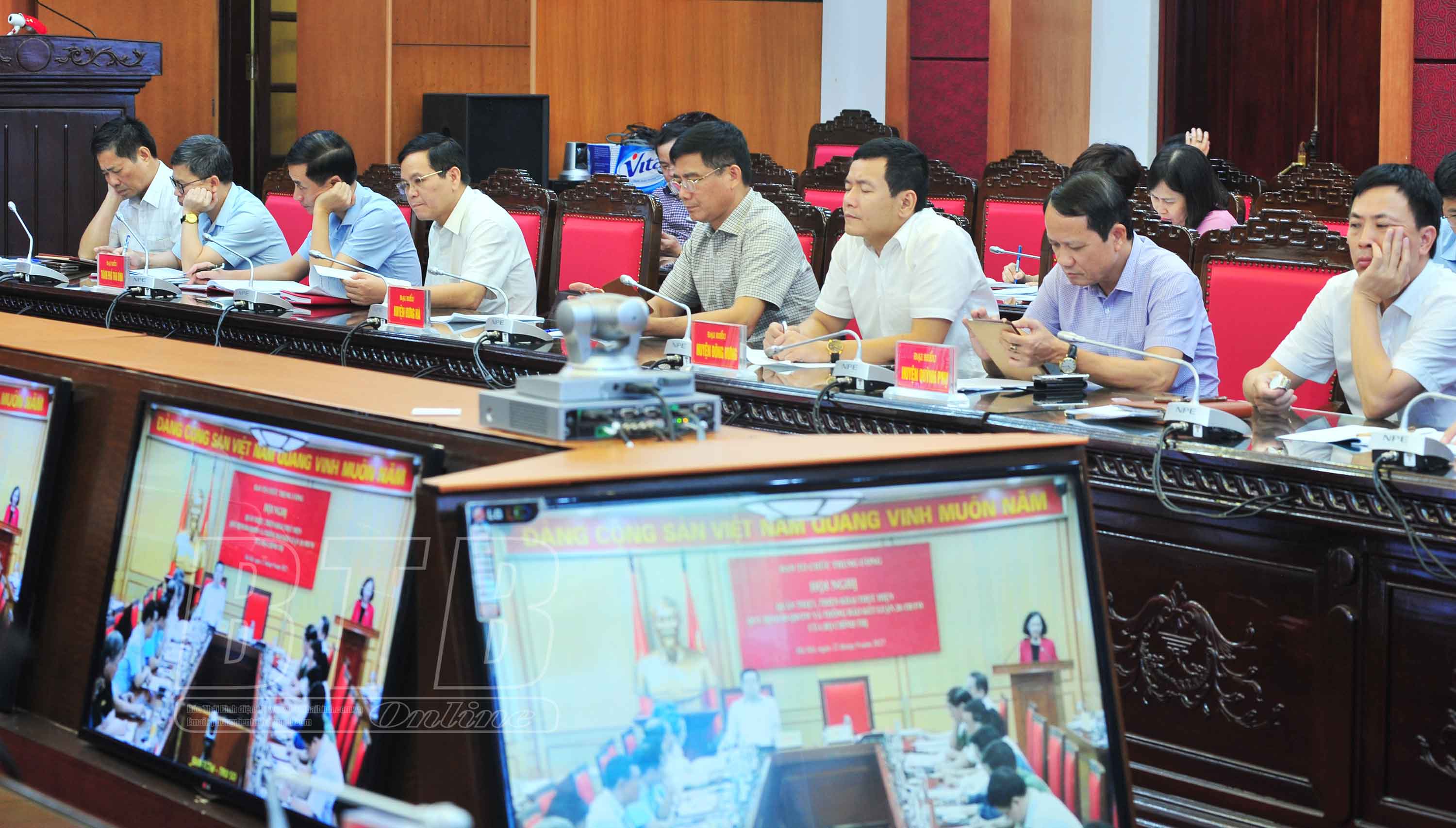 Các đồng chí: Trương Thị Mai, Ủy viên Bộ Chính trị, Bí thư Trung ương Đảng, Trưởng ban Tổ chức Trung ương; Mai Văn Chính, Ủy viên Ban Chấp hành Trung ương Đảng, Phó Trưởng ban thường trực Ban Tổ chức Trung ương chủ trì hội nghị. Dự hội nghị tại điểm cầu Thái Bình có đồng chí Nguyễn Tiến Thành, Phó Bí thư thường trực Tỉnh ủy, Chủ tịch HĐND tỉnh.