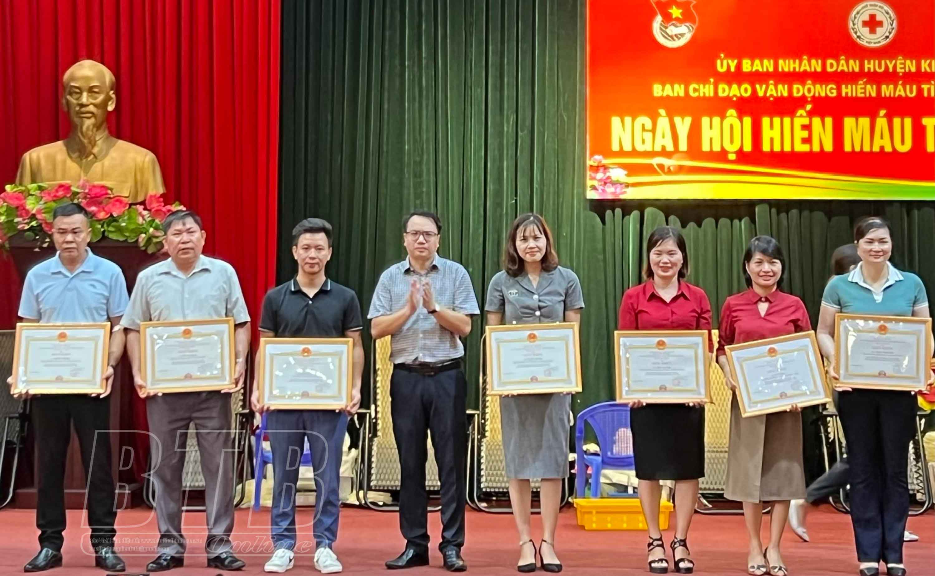 Nhân dịp này, 21 tập thể, cá nhân của huyện Kiến Xương có thành tích xuất sắc trong phong trào hiến máu nhân đạo năm 2021 đã được Ban Chỉ đạo vận động HMTN tỉnh biểu dương, khen thưởng.