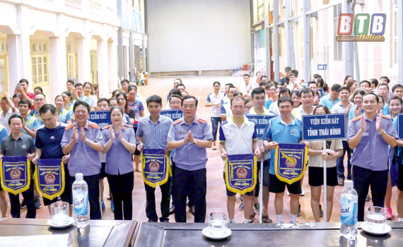 Lãnh đạo Viện Kiểm sát nhân dân tỉnh trao cờ lưu niệm giải thể thao kỷ niệm ngày truyền thống ngành Kiểm sát.