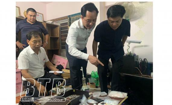 Khám xét nơi ở khẩn cấp của Tùng tại số nhà 05/313, đường Lý Bôn, tổ 14 phường Bồ Xuyên, lực lượng chức năng thu giữ 1 gói hêrôin trọng lượng 219,7268 gam, 1 bình đá, 1 cân điện tử, 1 súng quân dụng. Tiếp tục khám xét nơi ở của Tùng tại số nhà 41/313, đường Lý Bôn, tổ 14 phường Bồ Xuyên, lực lượng chức năng thu giữ 9 gói ma túy tổng hợp trọng lượng 45,2989 gam, giấu trong cốp xe máy.