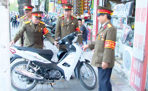 Tổ tự quản ANTT, ATGT của Chi hội CCB tổ 15, phường Kỳ Bá (thành phố Thái Bình) thường xuyên nhắc nhở các hộ dân không lấn chiếm vỉa hè, lòng, lề đường.