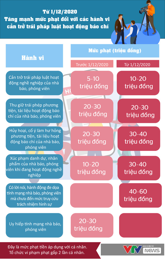 Từ ngày 1/12/2020, mức phạt đối với hành vi cản trở trái pháp luật hoạt động báo chí có thể lên tới 60 triệu đồng.