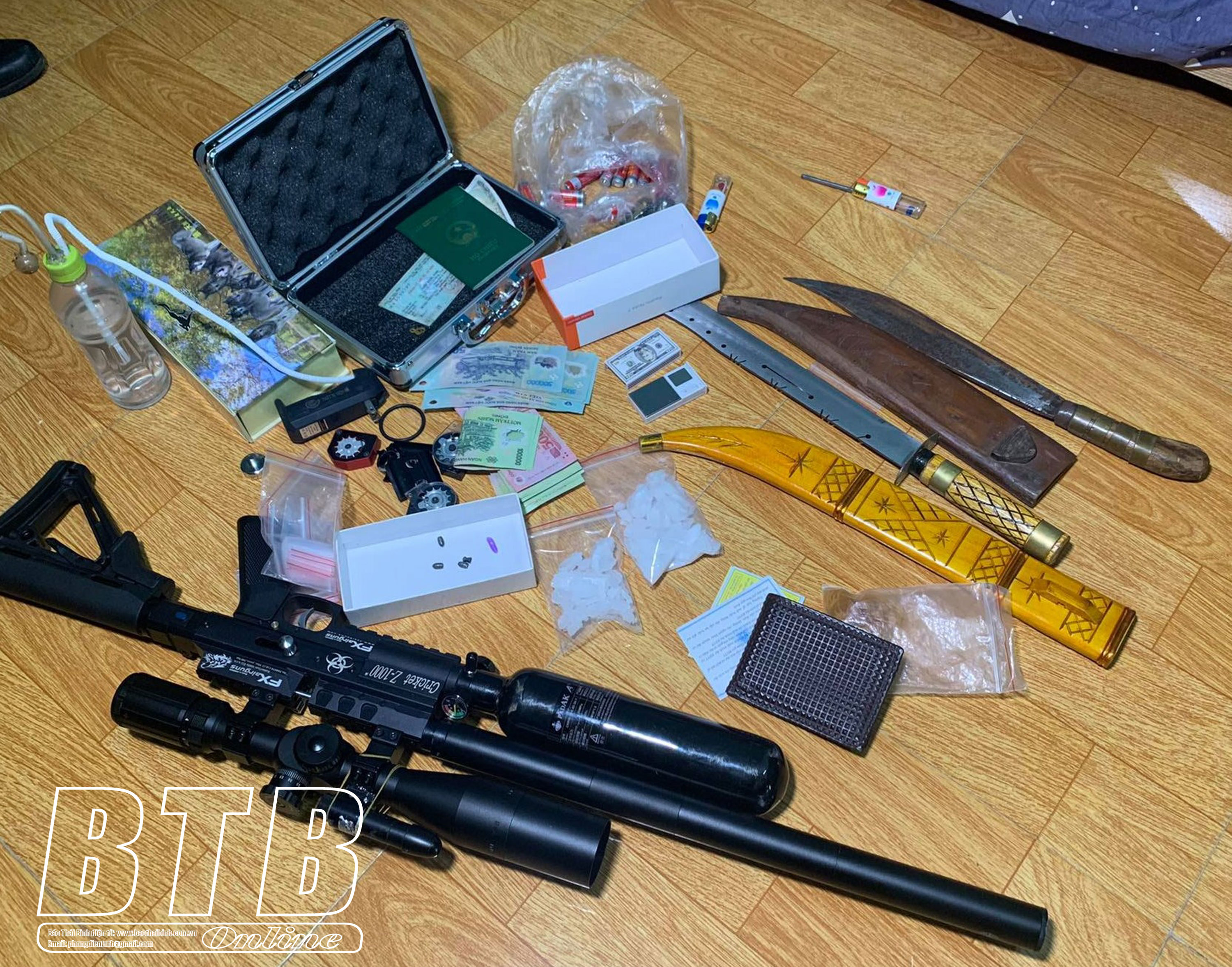 Mở rộng điều tra, lực lượng chức năng khám xét nơi ở của Tô Tiến Mỹ, sinh năm 1971, tổ 14, phường Tiền Phong, thành phố Thái Bình, thu giữ 35 viên ma túy tổng hợp trọng lượng 14,0656 gam, 19,893 gam ma túy tổng hợp và 23 triệu đồng; khám xét nơi ở của Hà Văn Ánh, sinh năm 1969, tổ 6, phường Hoàng Diệu, thành phố Thái Bình, lực lượng chức năng thu giữ 60 gam ma túy đá, 1 bình sử dụng ma túy đá, 1 cân điện tử, 1 khẩu súng thể thao, 7 viên đạn và gần 13,7 triệu đồng; khám xét nơi ở của Hà Thị Liên, sinh năm 2001, tổ 14, phường Tiền Phong, thành phố Thái Bình, lực lượng chức năng thu giữ 0,2370 gam ma túy tổng hợp.