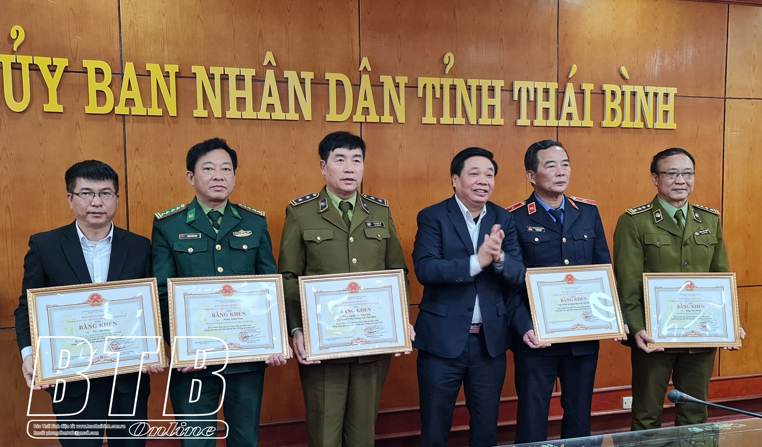 Nhân dịp này, BCĐ 389/ĐP tỉnh tổ chức trao bằng khen của Trưởng ban Chỉ đạo 389 quốc gia cho 5 tập thể và cá nhân có thành tích xuất sắc trong công tác đấu tranh chống buôn lậu, gian lận thương mại và hàng giả năm 2019.