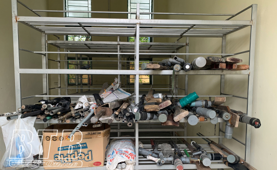 Vũ khí, công cụ hỗ trợ do người dân giao nộp tại Công an huyện Hưng Hà.