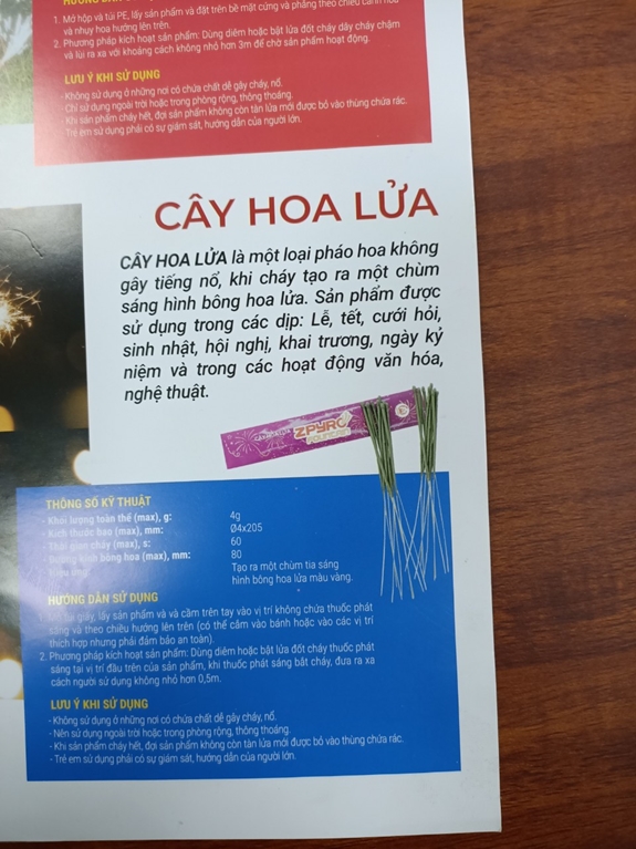Sản phẩm ống phun hoa lửa cầm tay.