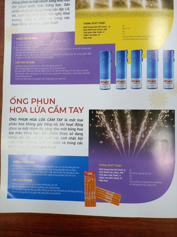 Đại diện Công ty TNHH MTV Hóa chất 21 cho biết: Tại cửa hàng giới thiệu sản phẩm của công ty, bảng giá được niêm yết công khai với nhiều loại mẫu mã: Ống phun nước bạc (ngoài trời, trong nhà); ống phun hoa lửa cầm tay; cây hoa lửa; cánh hoa xoay; thác nước bạc với mức giá từ 13.000-450.000 đồng. Khi tới mua pháo hoa, người dân phải kê khai một số thông tin cá nhân, bảo đảm tuân thủ quy định tại Điều 17 Nghị định 137/2020: Cơ quan, tổ chức, cá nhân có năng lực hành vi dân sự đầy đủ thì được sử dụng pháo hoa trong các trường hợp như lễ, tết, sinh nhật, cưới hỏi, hội nghị, khai trương, ngày kỷ niệm và trong hoạt động văn hóa, nghệ thuật. Theo một số người dân đi mua pháo hoa về cho biết thì thủ tục mua khá chặt chẽ, khách hàng phải trình chứng minh thư và chỉ được mua với số lượng theo quy định. Những công dân đủ 18 tuổi sẽ được phép mua pháo hoa trực tiếp tại cửa hàng bán sản phẩm của công ty Hóa Chất 21. Khi mua hàng sẽ phải xuất trình Chứng minh thư nhân dân, điền thông tin của người mua, các sản phẩm chọn mua để lưu trữ thông tin. Pháo hoa không tiếng nổ không bán online, không giao hàng tại nhà. Bạn chỉ có thể mua pháo trực tiếp tại các cửa hàng được cấp phép của Công ty TNHH MTV Hóa Chất 21.