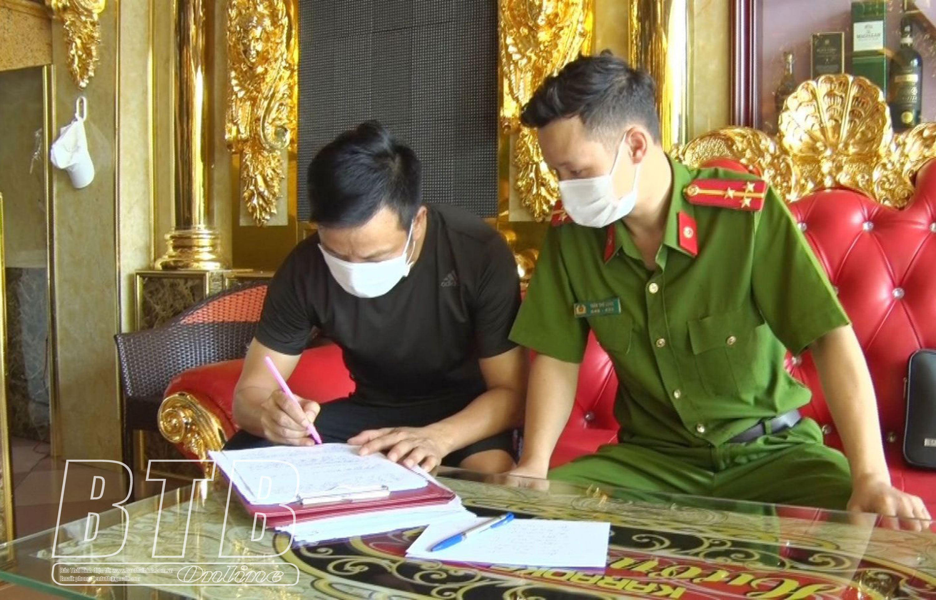 Công an huyện Hưng Hà xử phạt chủ quán karaoke Hương Lan, thị trấn Hưng Hà vi phạm quy định phòng chống, dịch Covid-19.