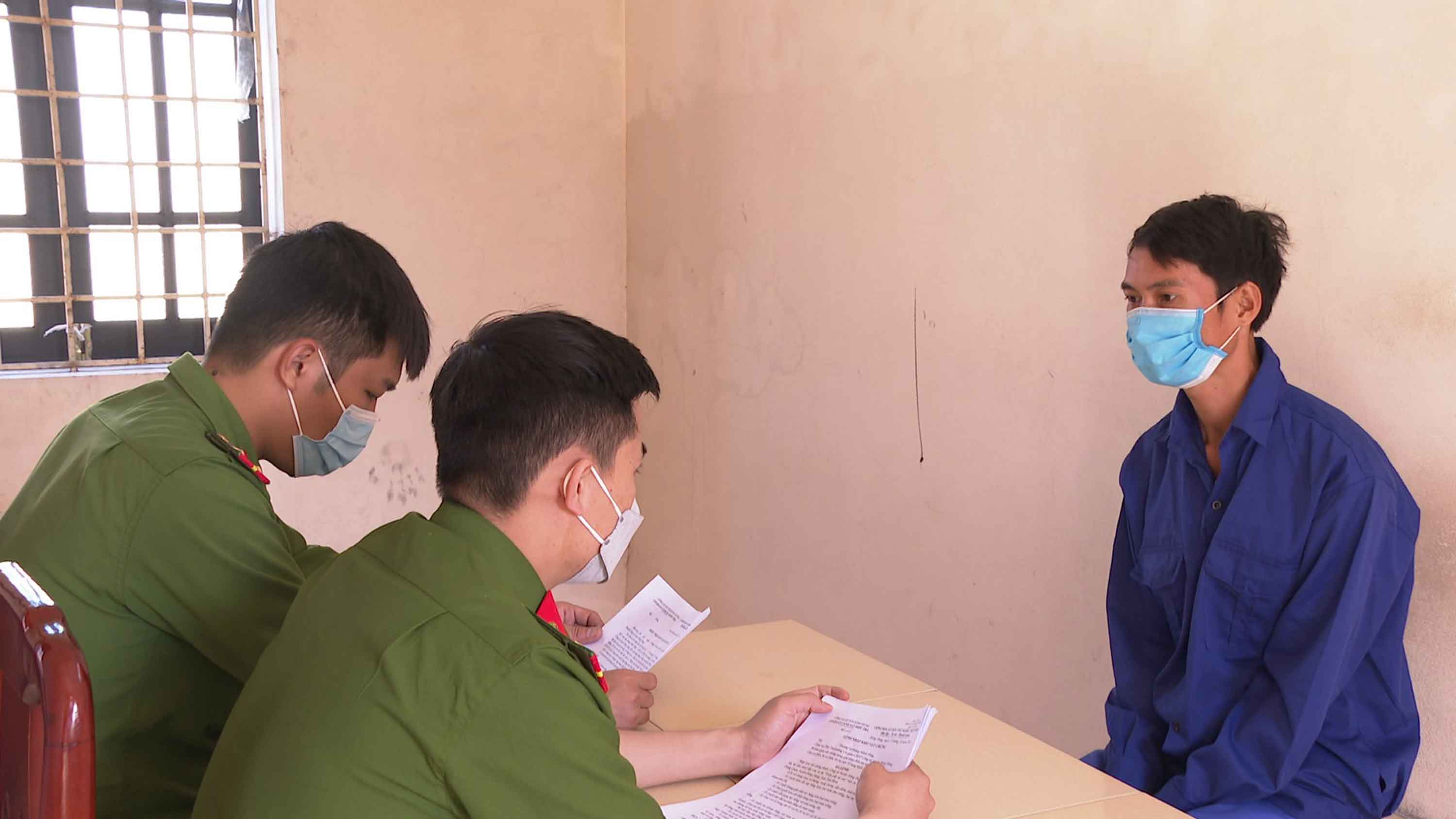 Đối tượng Trần Thanh Bình tại Cơ quan Cảnh sát điều tra Công an huyện Đông Hưng.