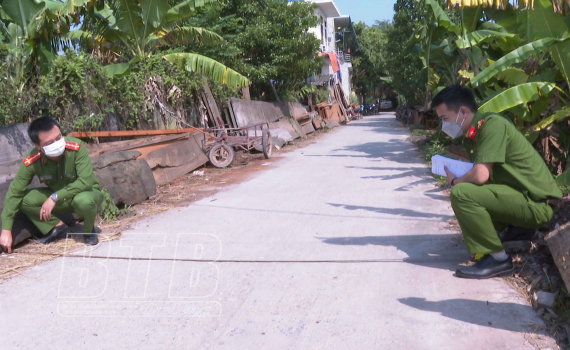 Công an huyện Đông Hưng thực hiện điều tra tại hiện trường.